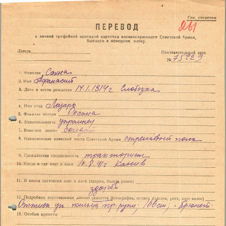 Военнопленные, трофейные карточки. Киевская обл.