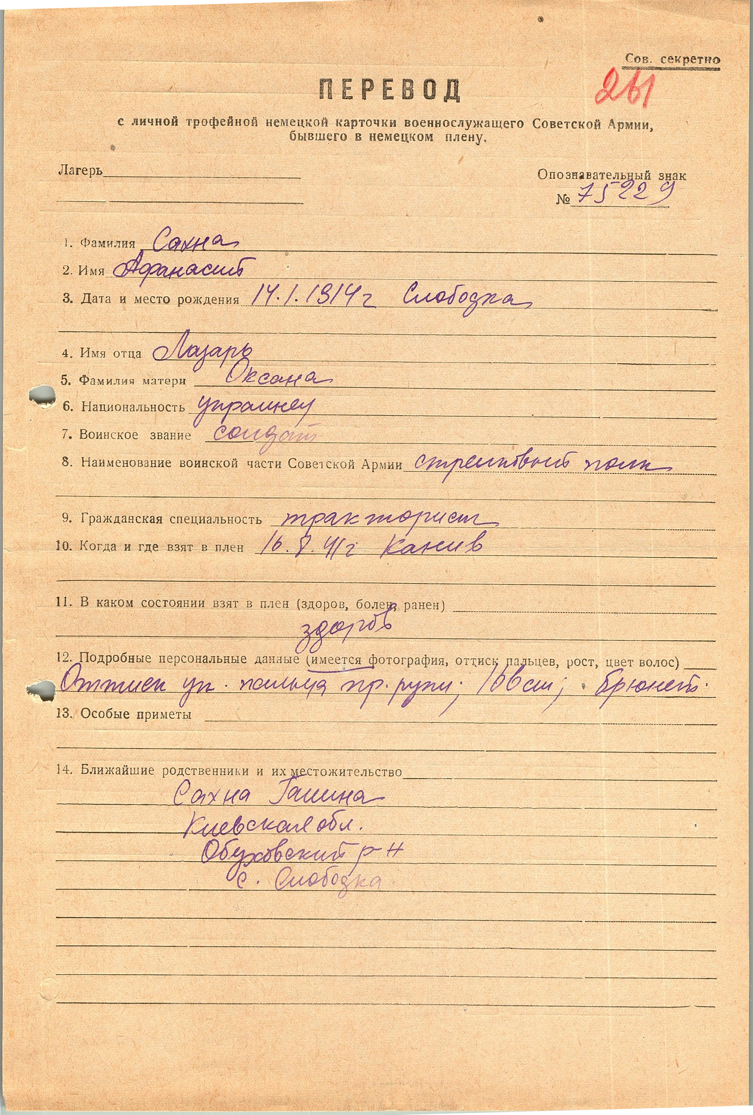 Военнопленные, трофейные карточки. Киевская обл.
