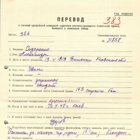 Военнопленные, трофейные карточки. Киевская обл.
