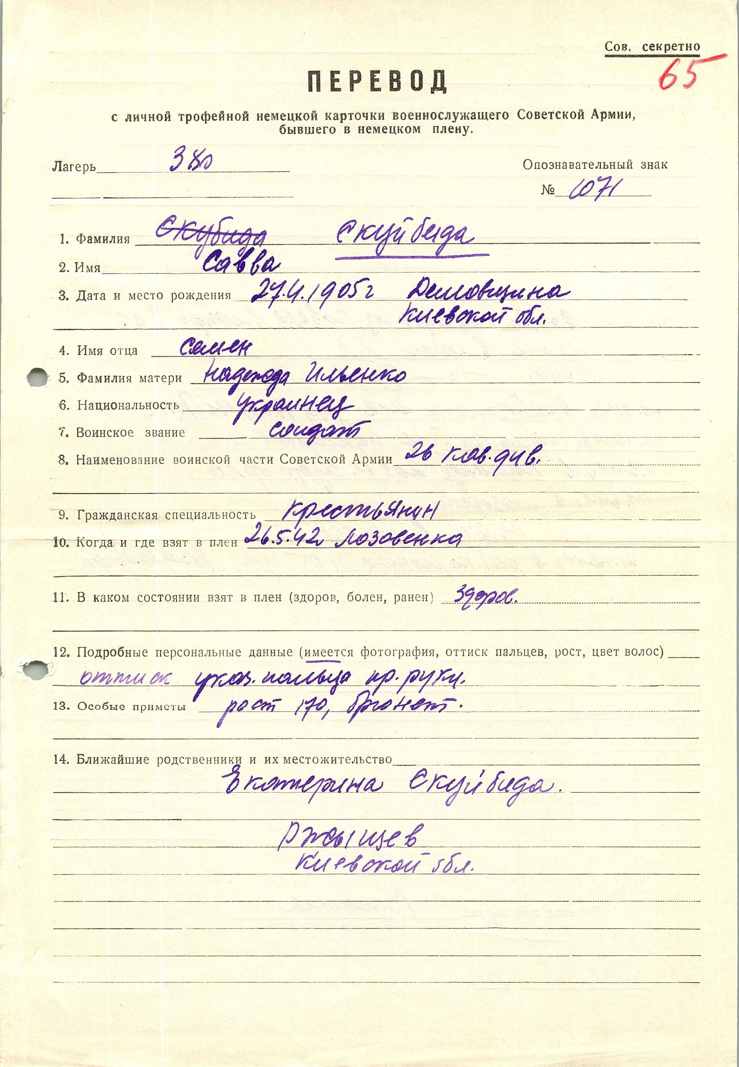 Военнопленные, трофейные карточки. Киевская обл.
