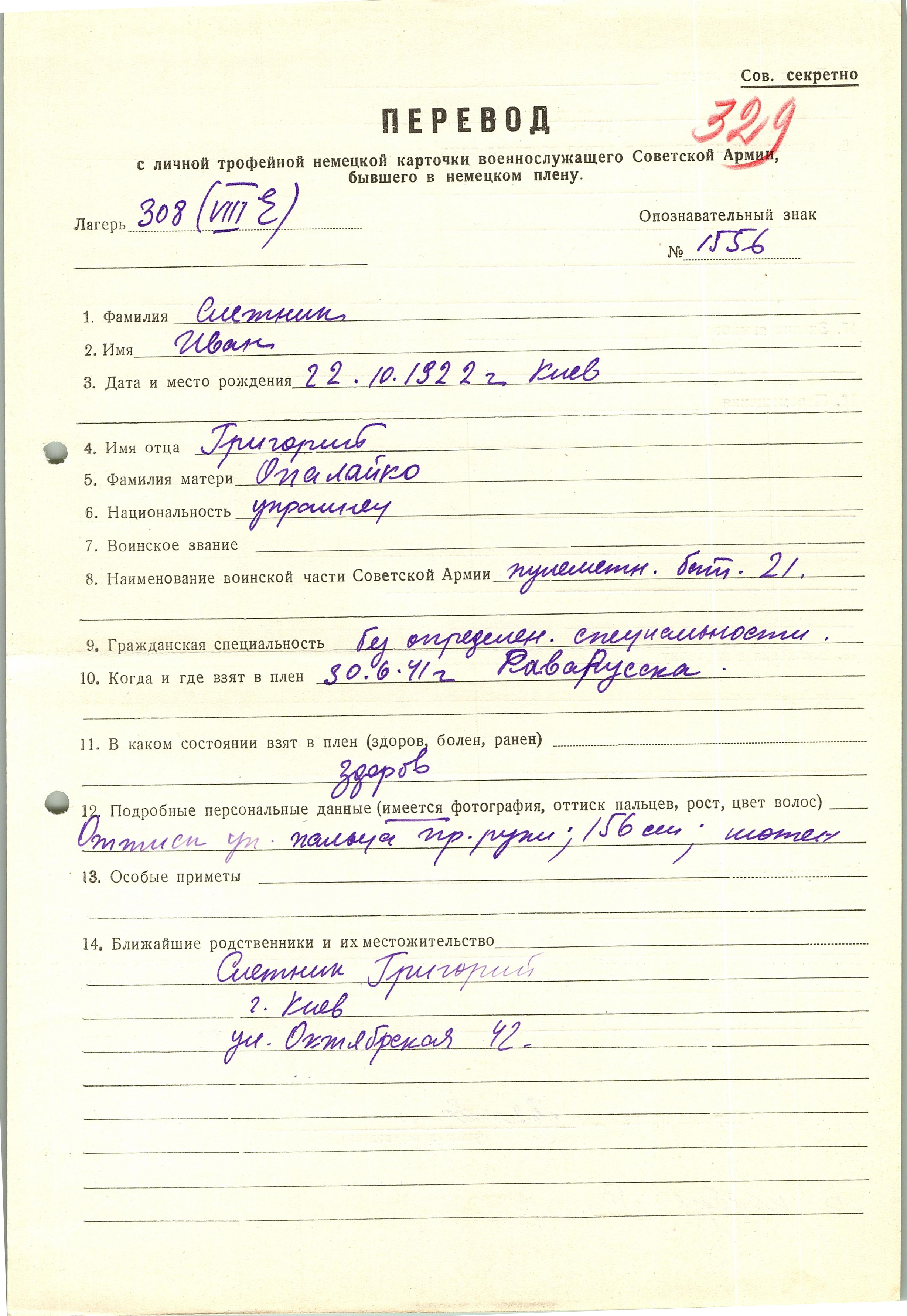 Военнопленные, трофейные карточки. Киевская обл.