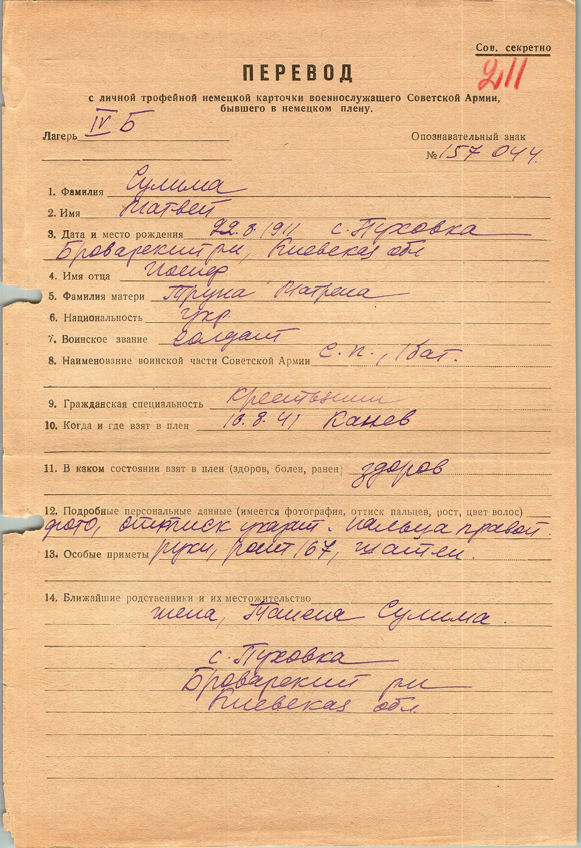 Военнопленные, трофейные карточки. Киевская обл.