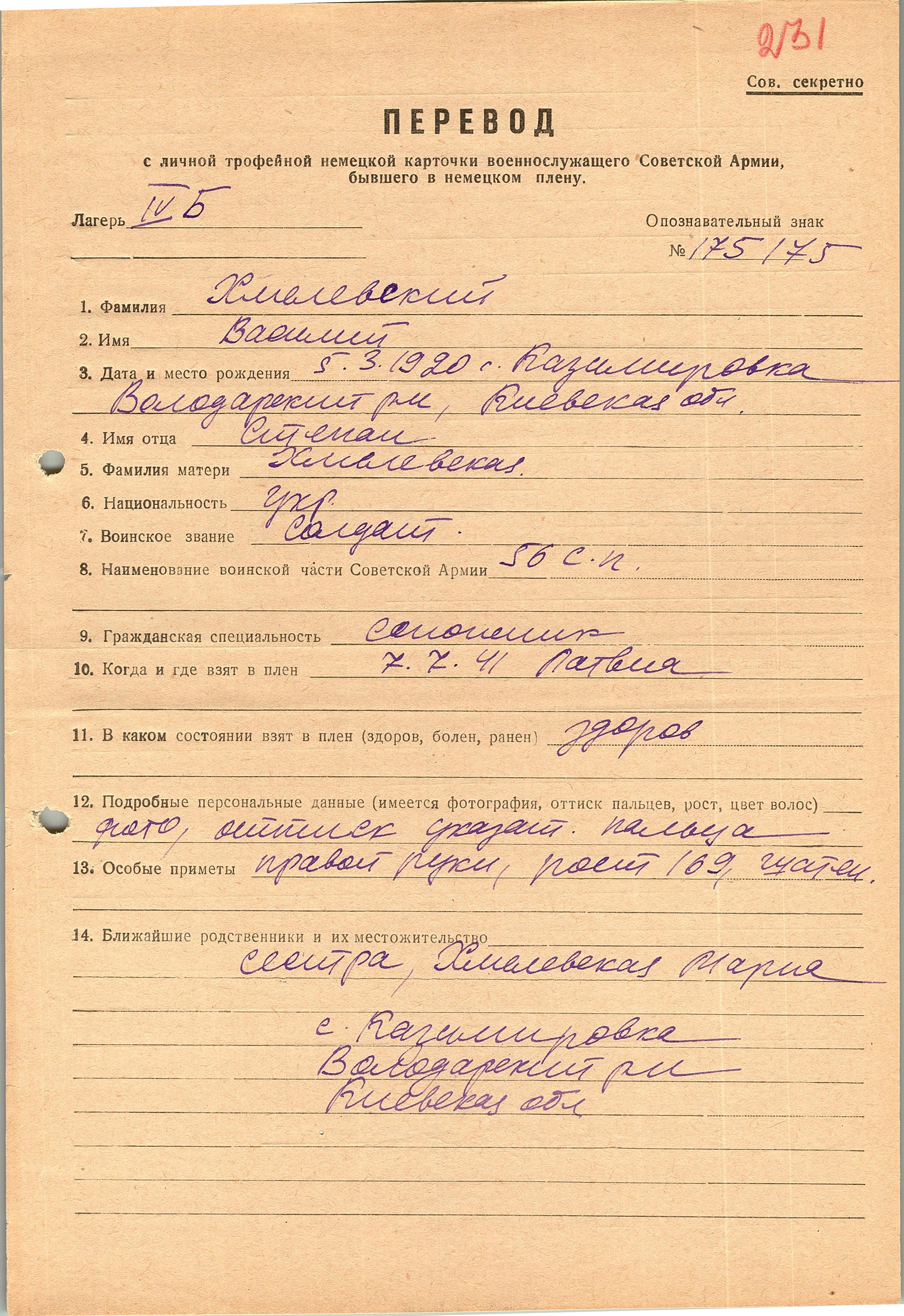 Военнопленные, трофейные карточки. Киевская обл.