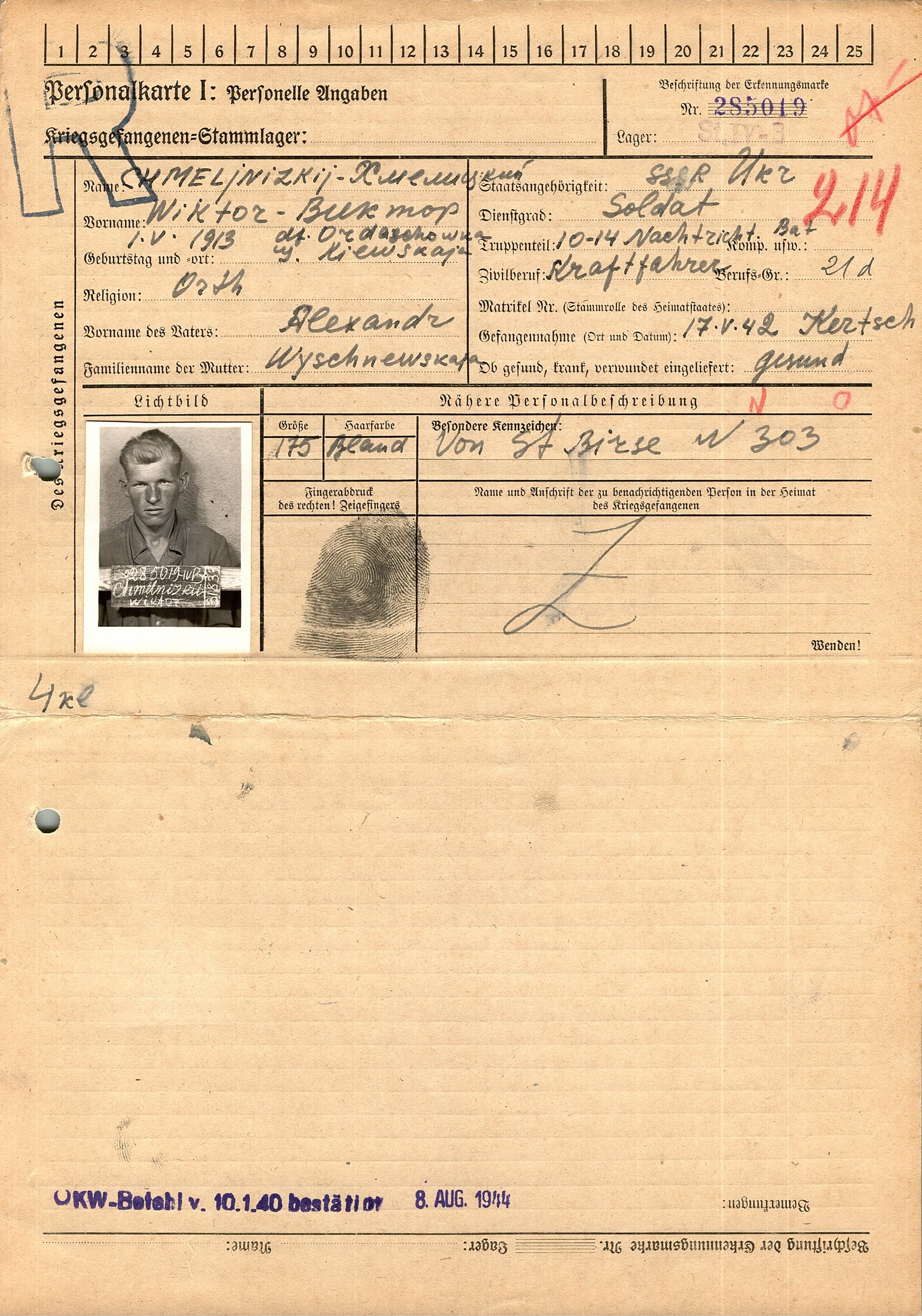 Военнопленные, трофейные карточки. Киевская обл.