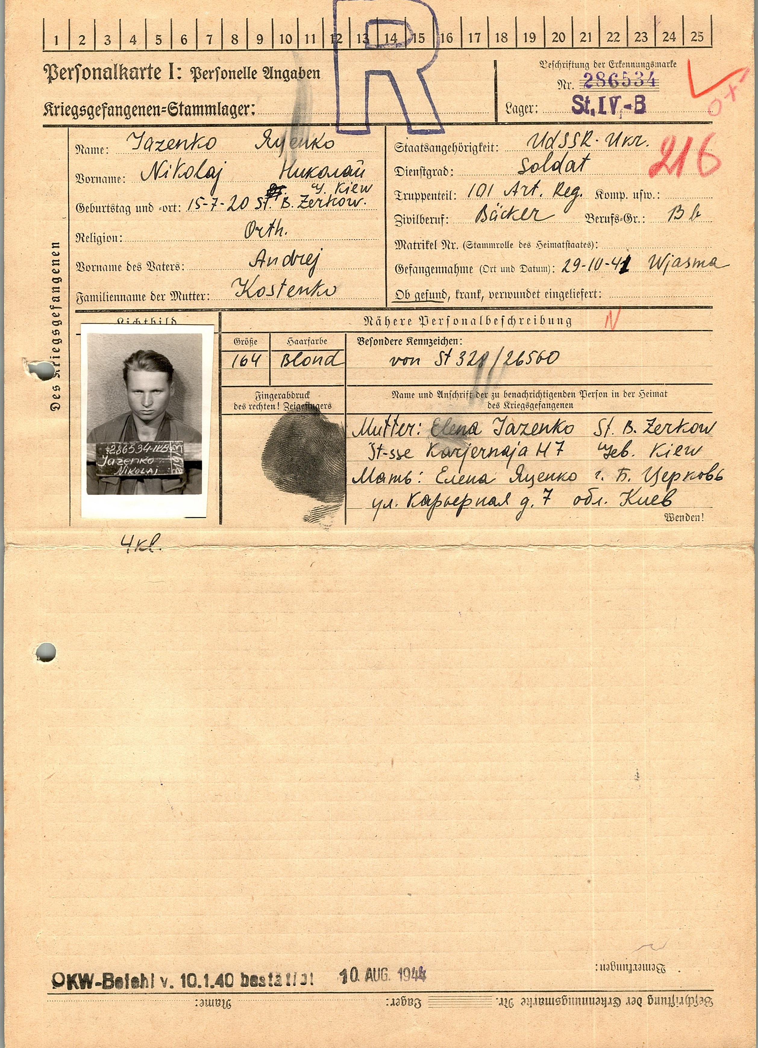 Военнопленные, трофейные карточки. Киевская обл.