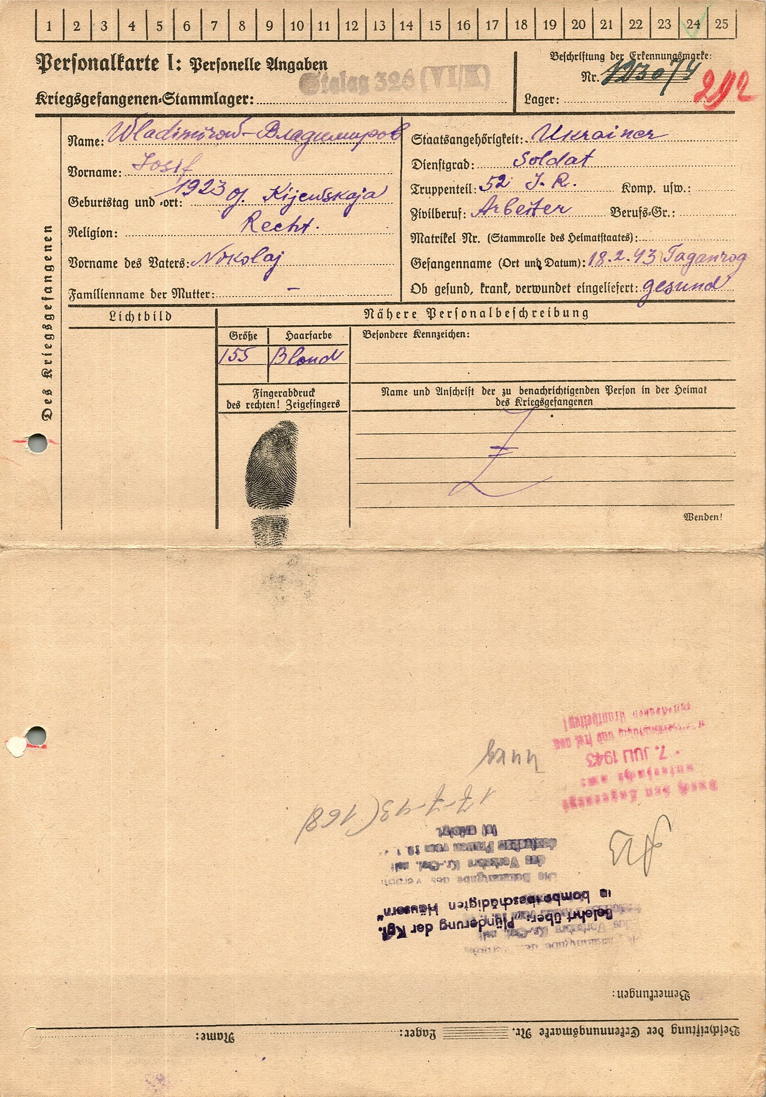 Военнопленные, трофейные карточки. Киевская обл.