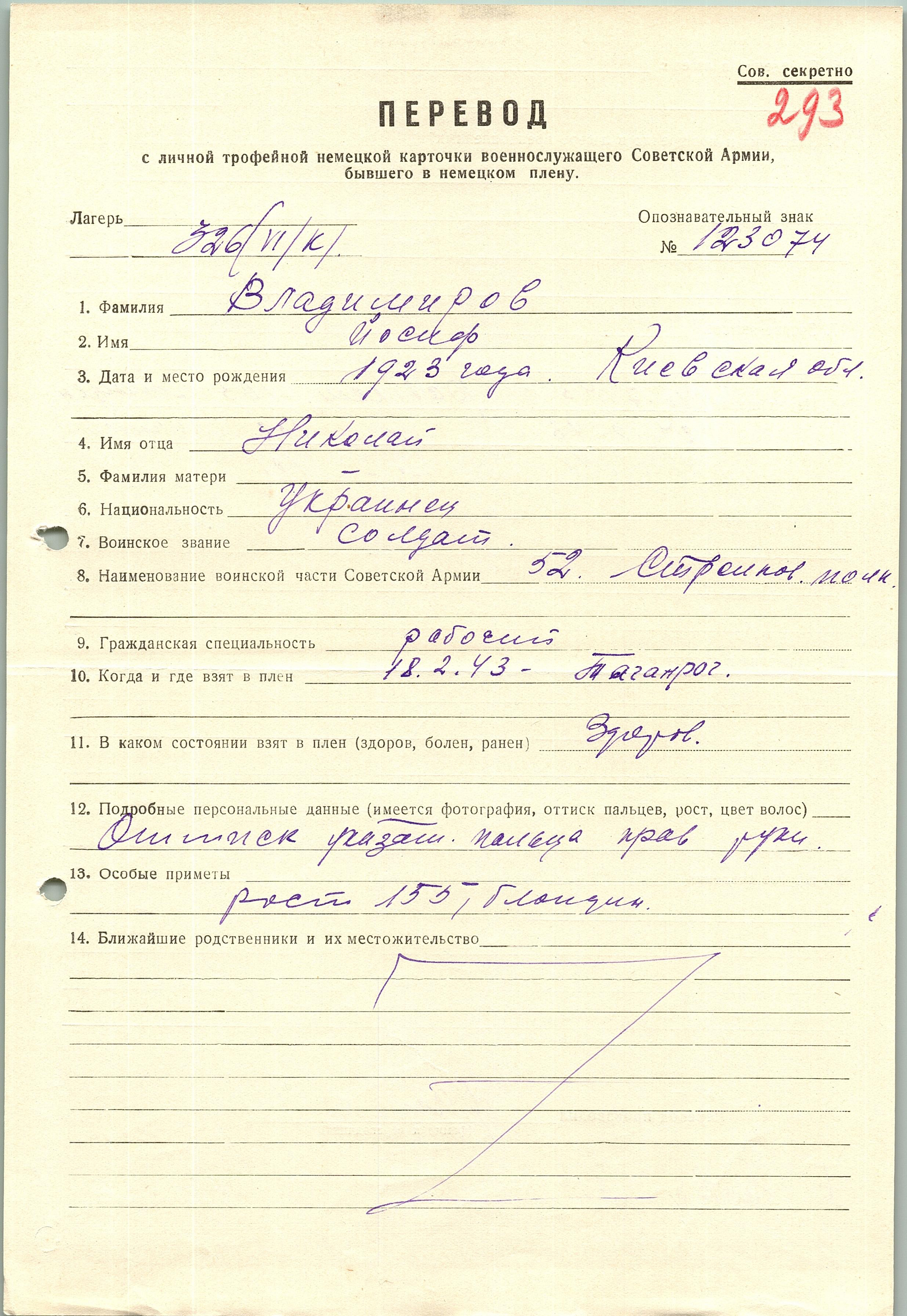 Военнопленные, трофейные карточки. Киевская обл.