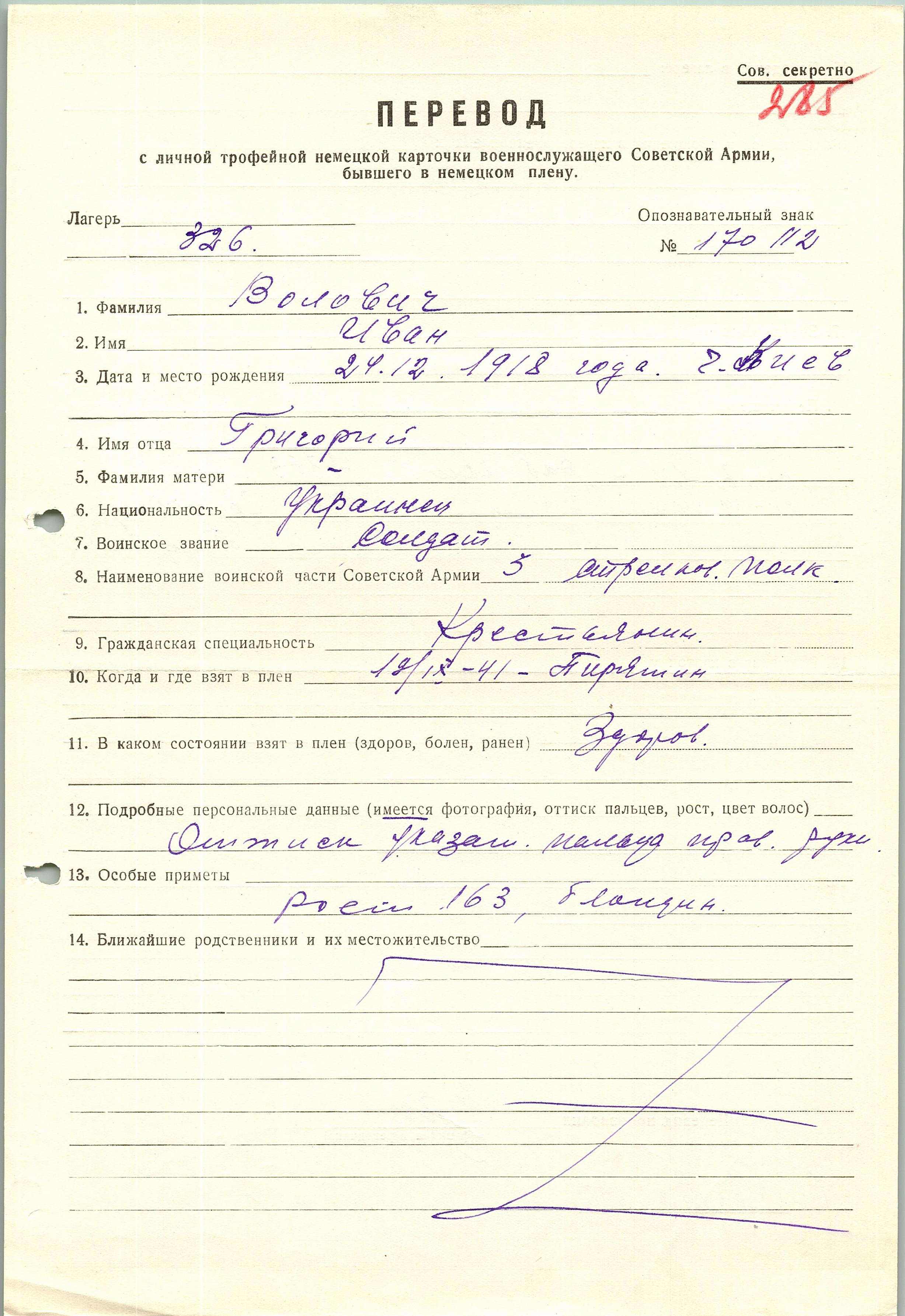 Военнопленные, трофейные карточки. Киевская обл.