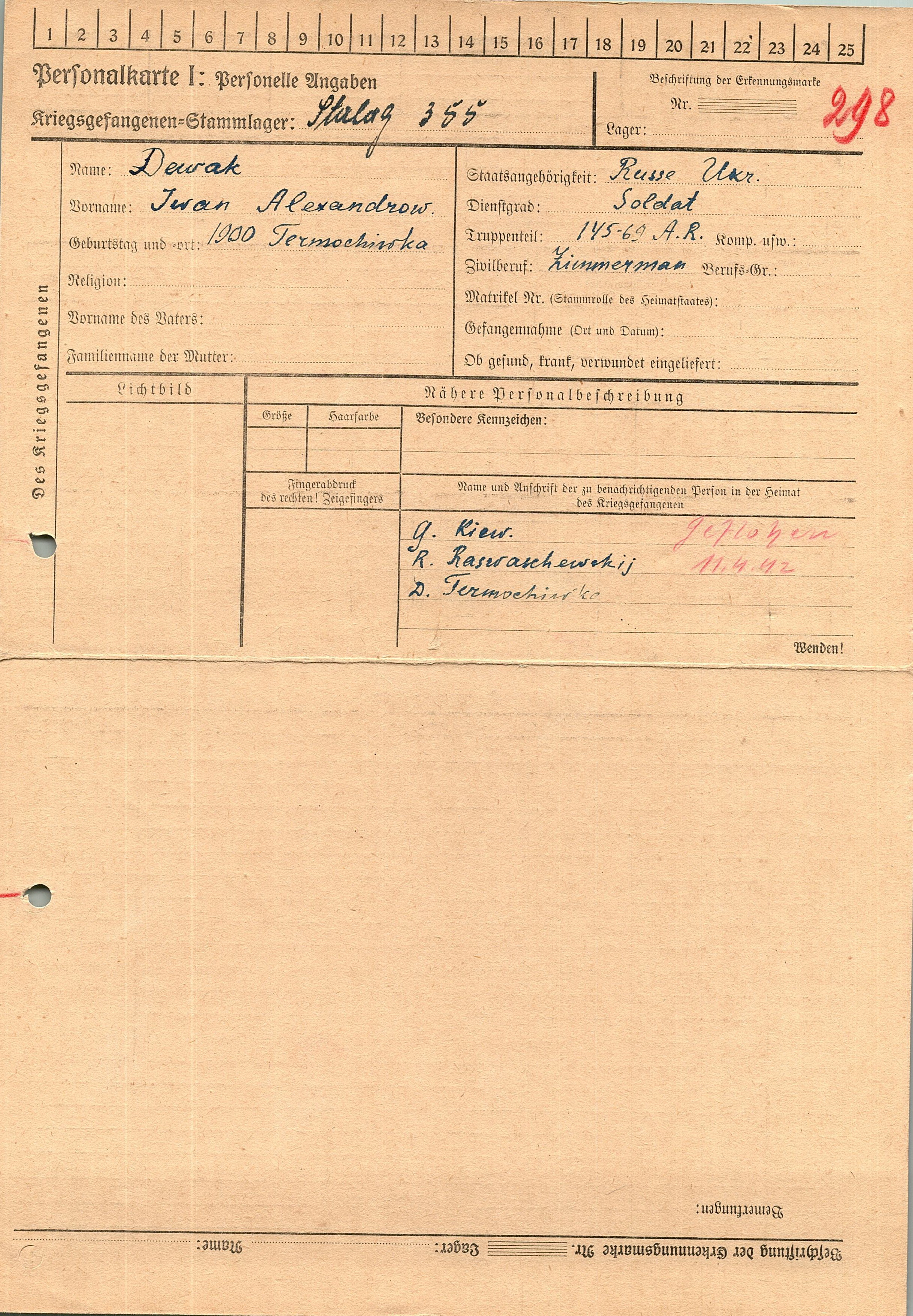 Военнопленные, трофейные карточки. Киевская обл.