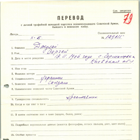 Военнопленные, трофейные карточки. Киевская обл.