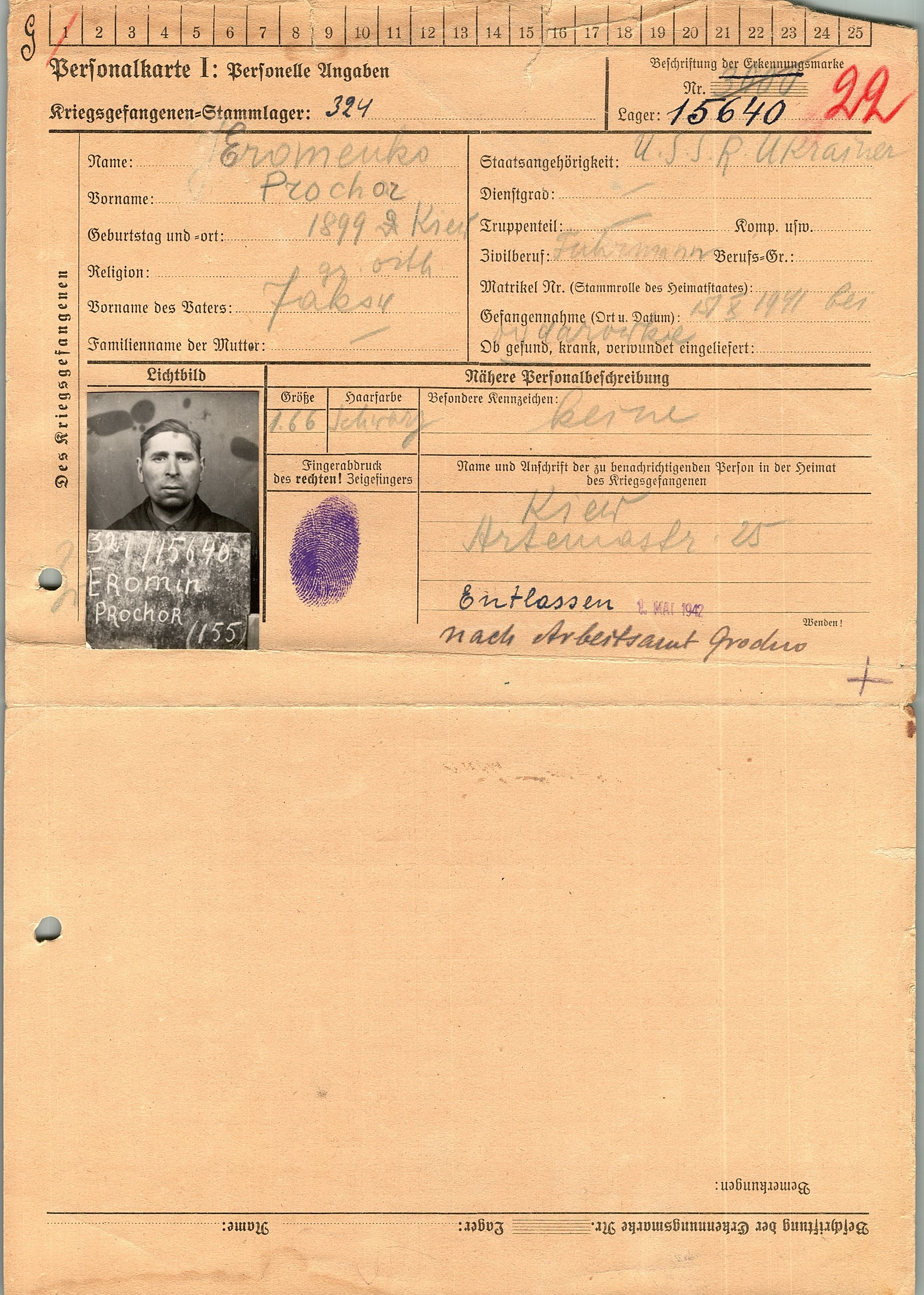 Военнопленные, трофейные карточки. Киевская обл.