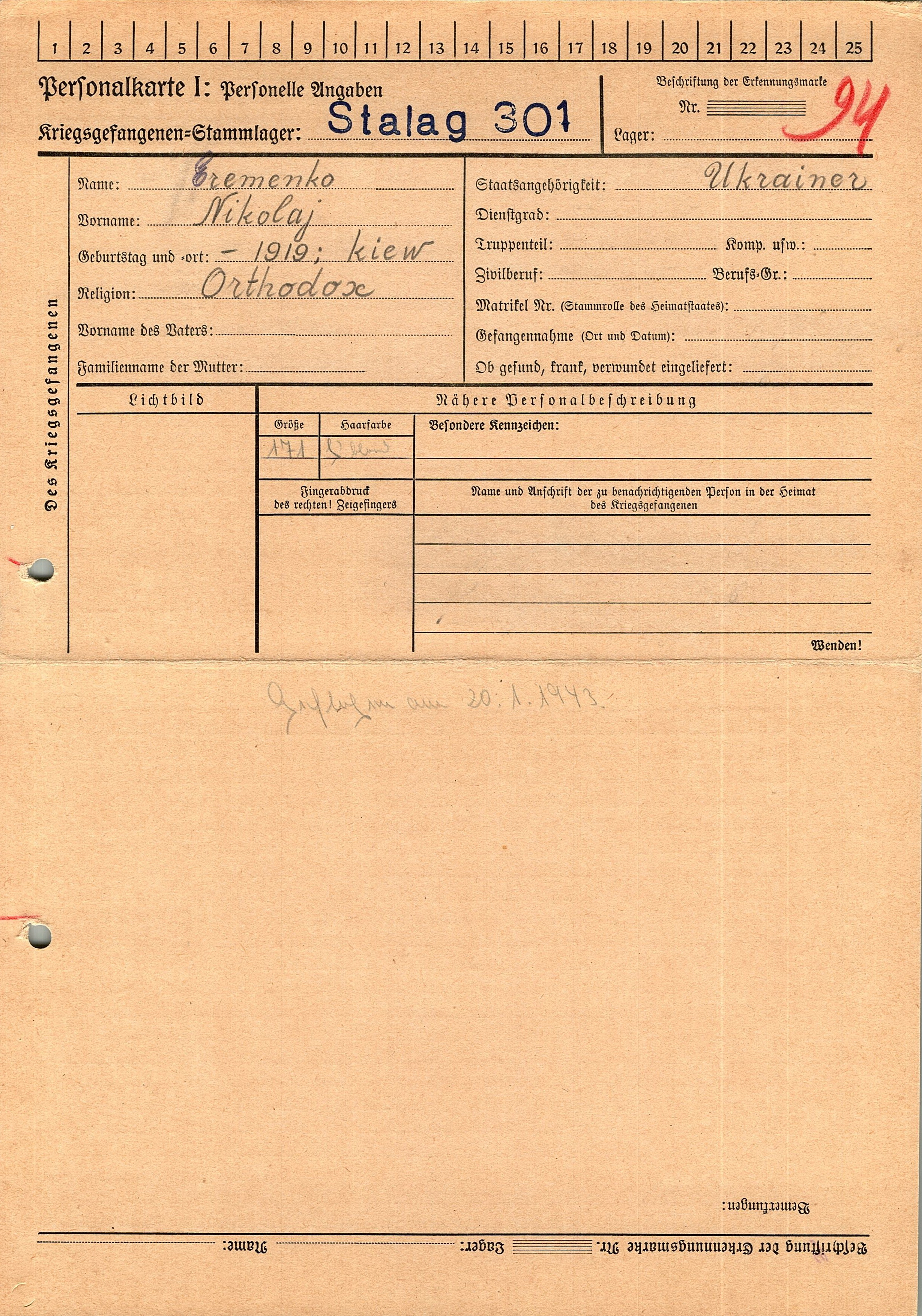 Военнопленные, трофейные карточки. Киевская обл.