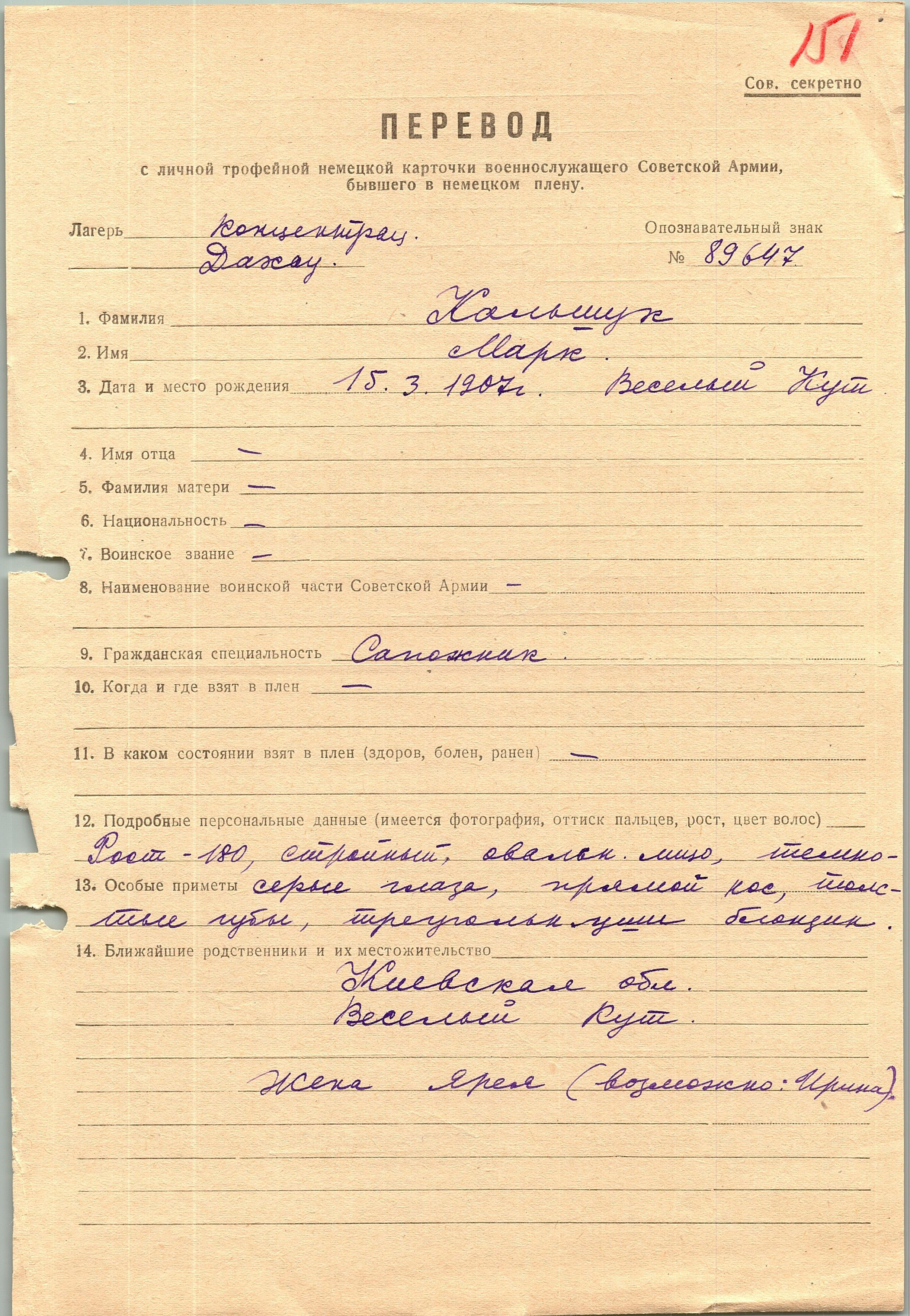 Военнопленные, трофейные карточки. Киевская обл.