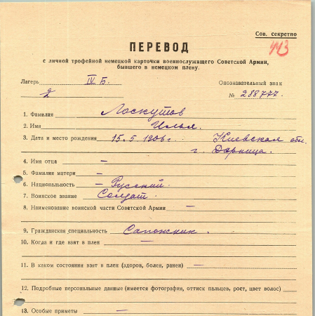 Военнопленные, трофейные карточки. Киевская обл.