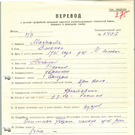 Военнопленные, трофейные карточки. Киевская обл.