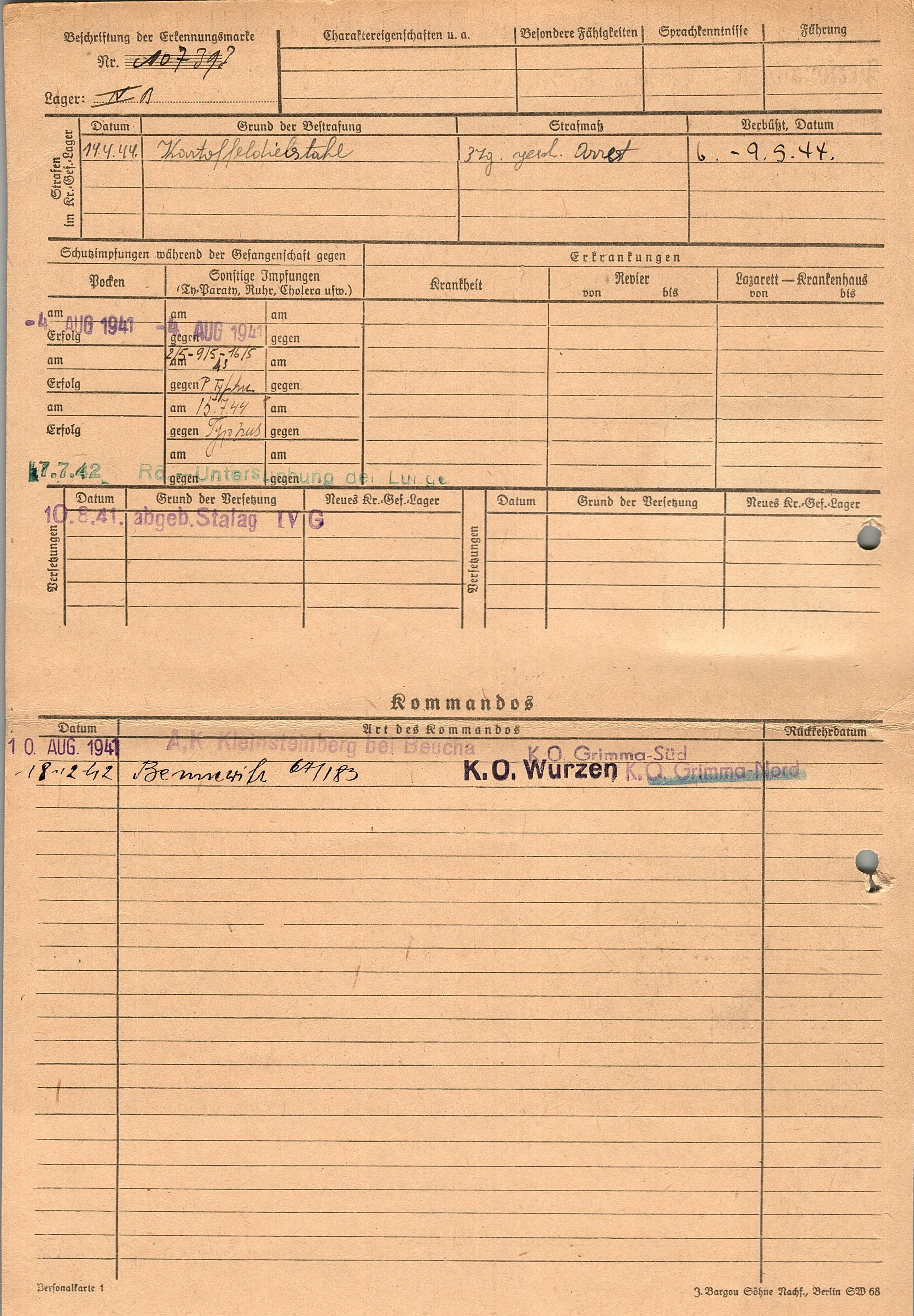 Военнопленные, трофейные карточки. Киевская обл.