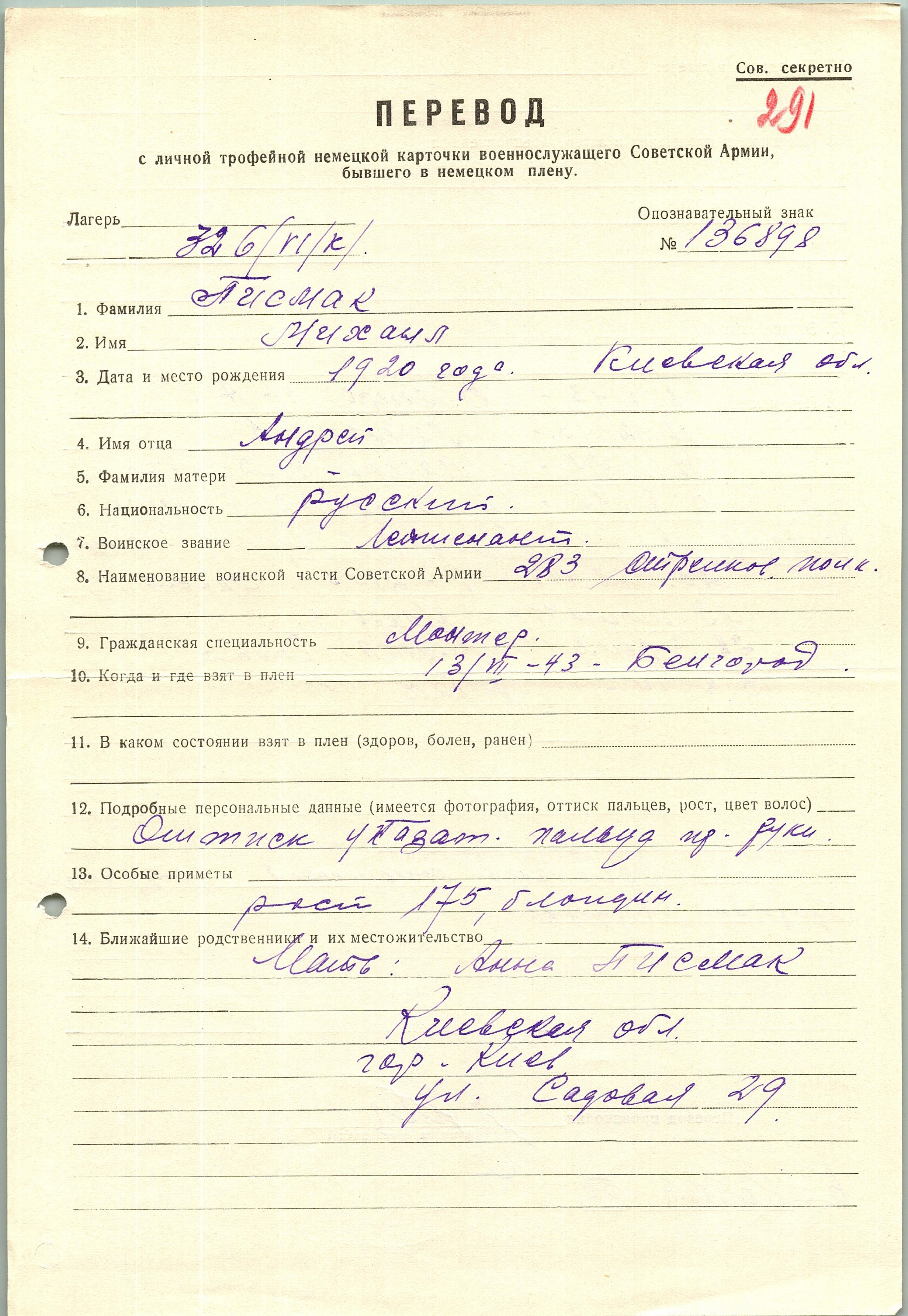 Военнопленные, трофейные карточки. Киевская обл.