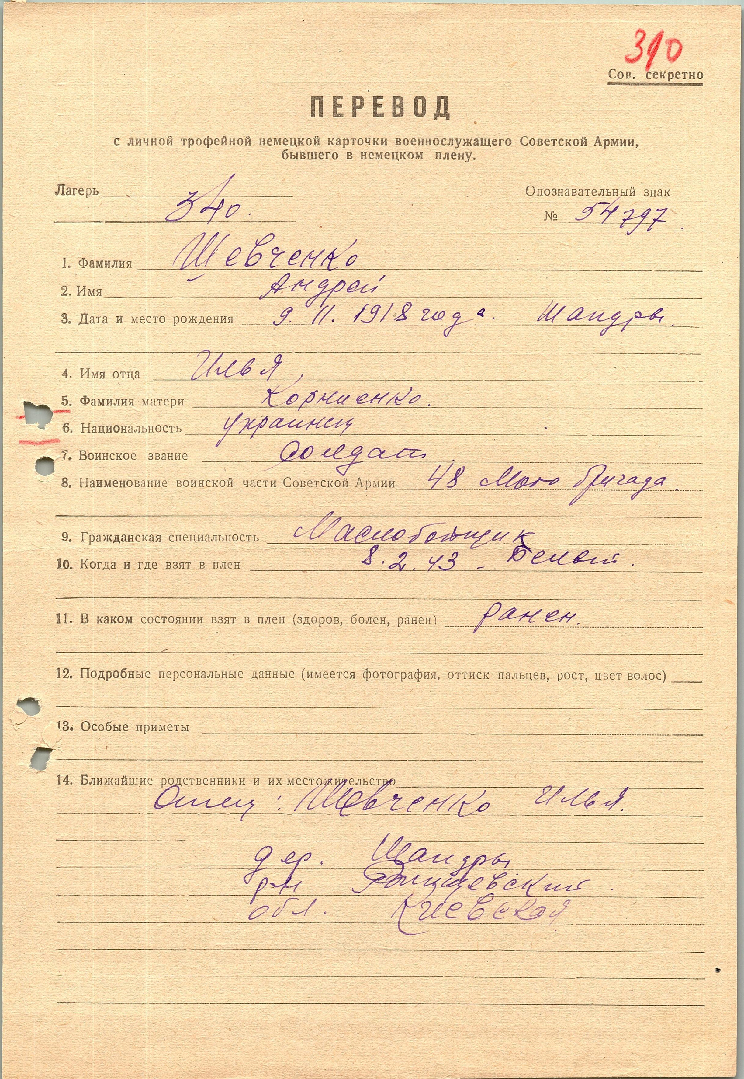 Военнопленные, трофейные карточки. Киевская обл.