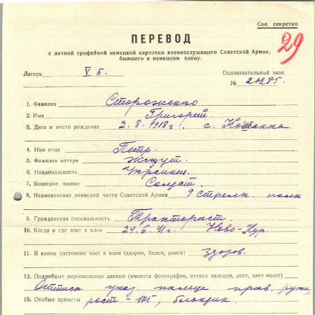 Военнопленные, трофейные карточки. Киевская обл.