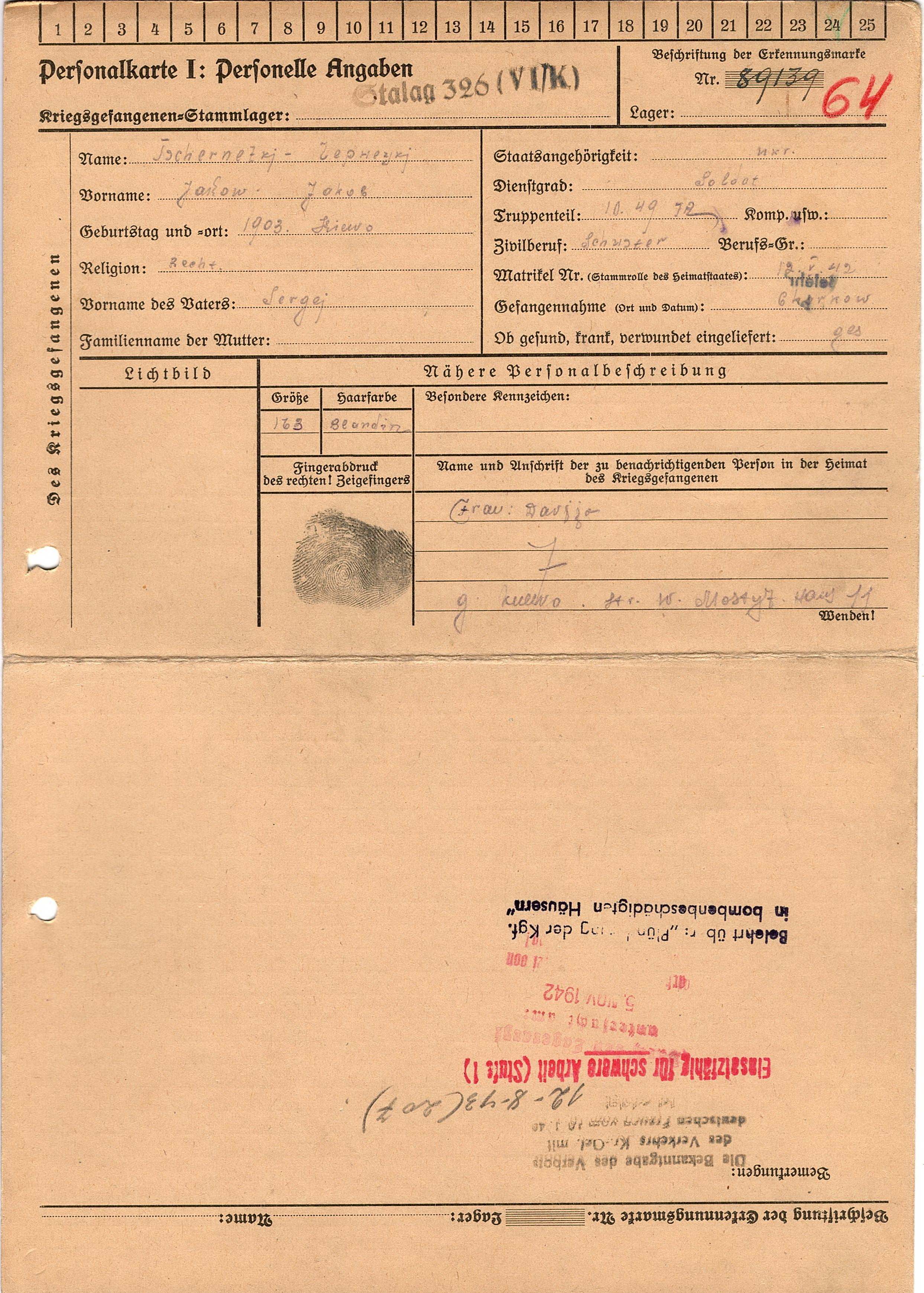 Военнопленные, трофейные карточки. Киевская обл.