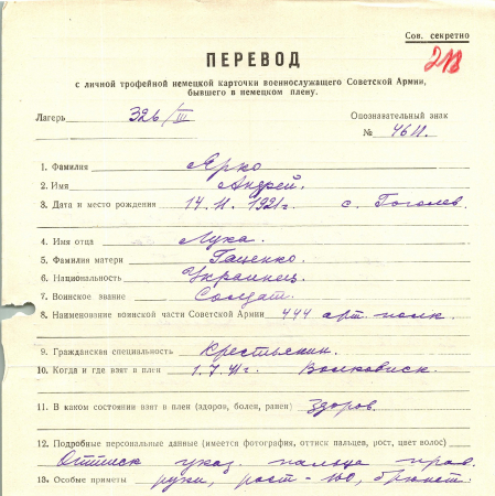 Военнопленные, трофейные карточки. Киевская обл.