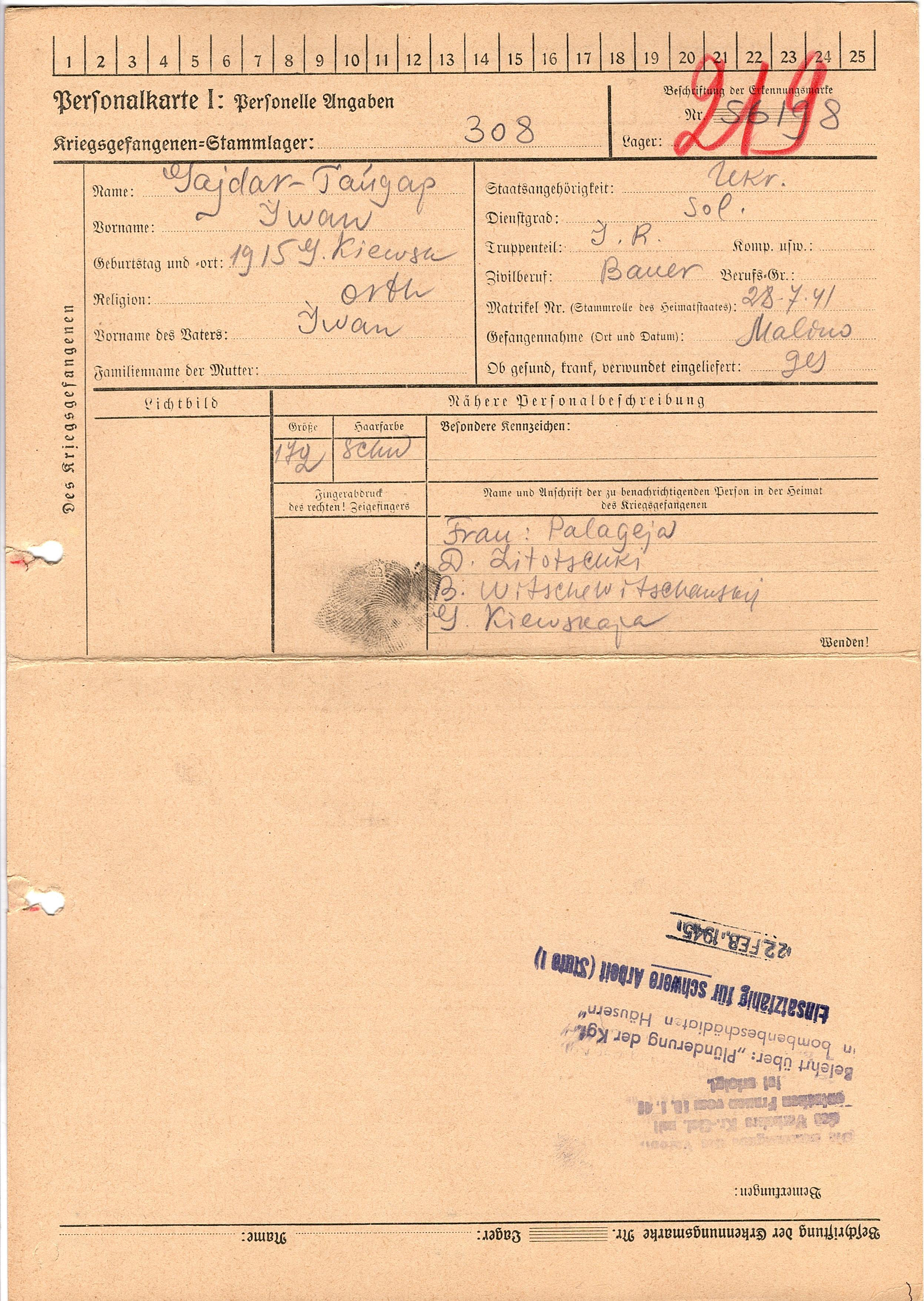 Военнопленные, трофейные карточки. Киевская обл.