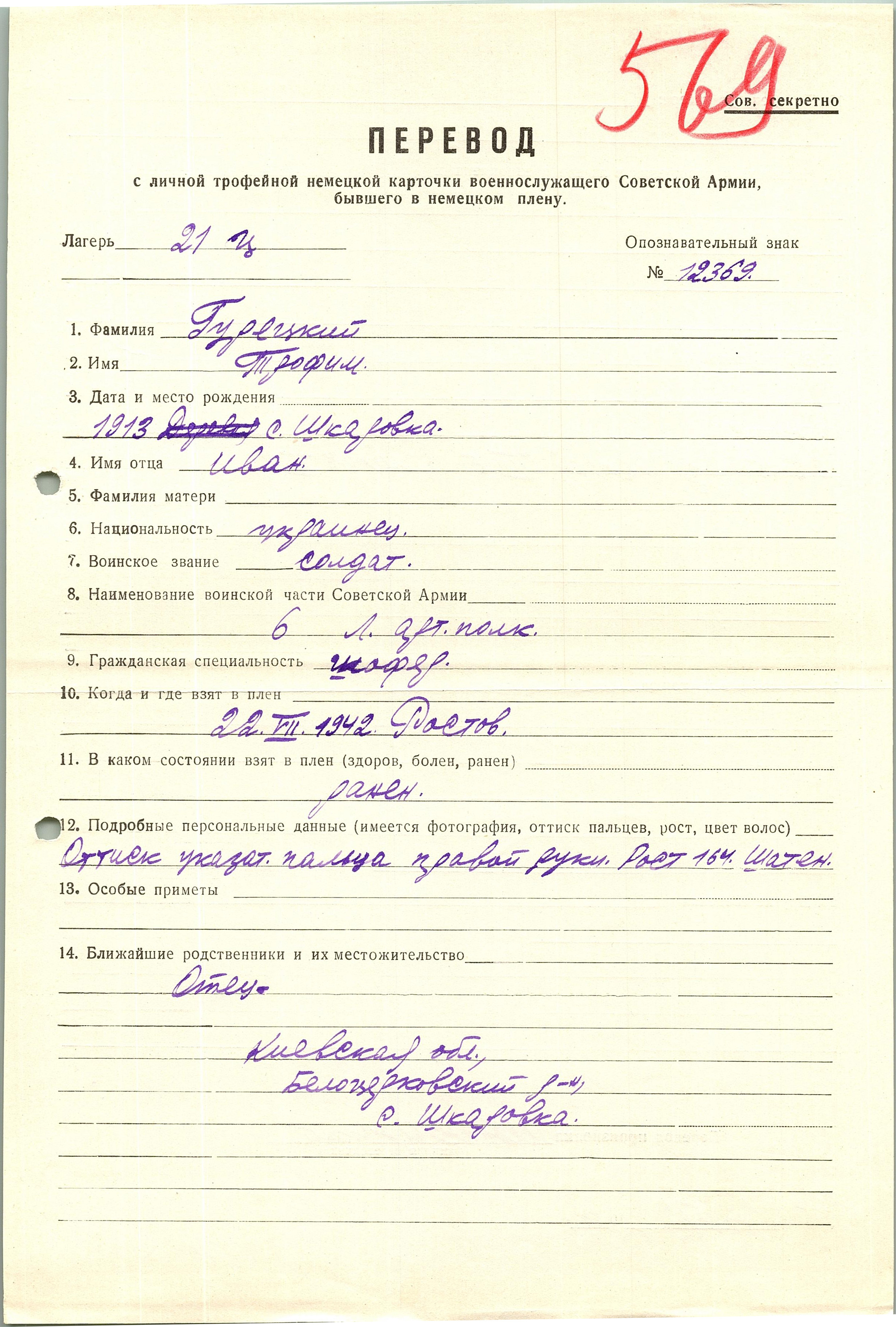 Военнопленные, трофейные карточки. Киевская обл.