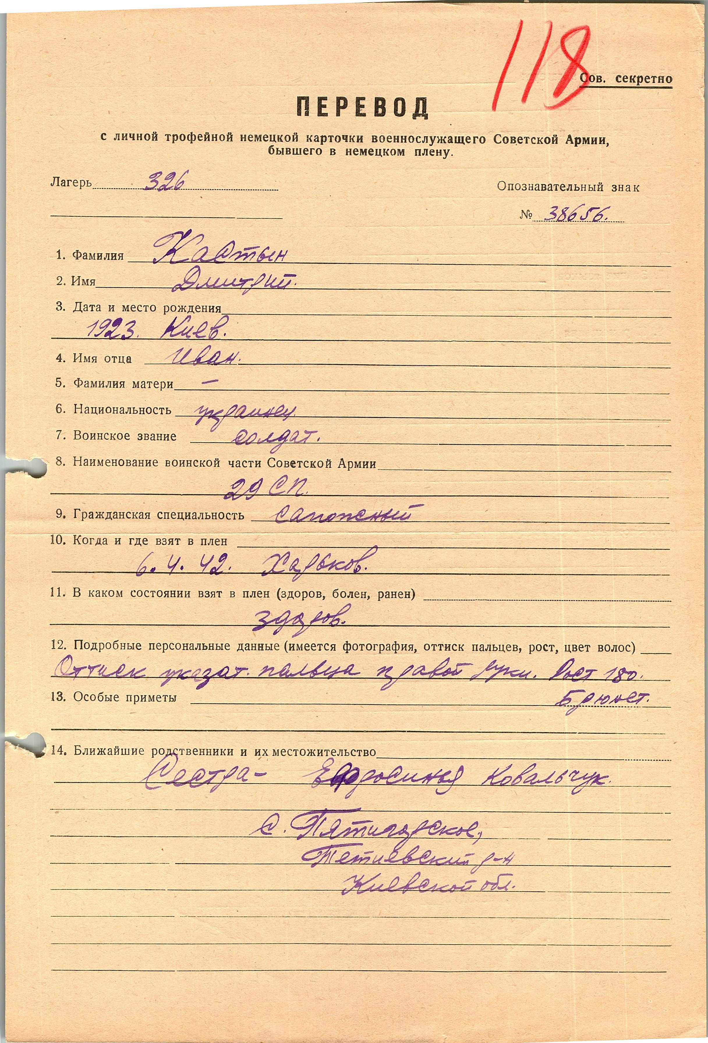 Военнопленные, трофейные карточки. Киевская обл.