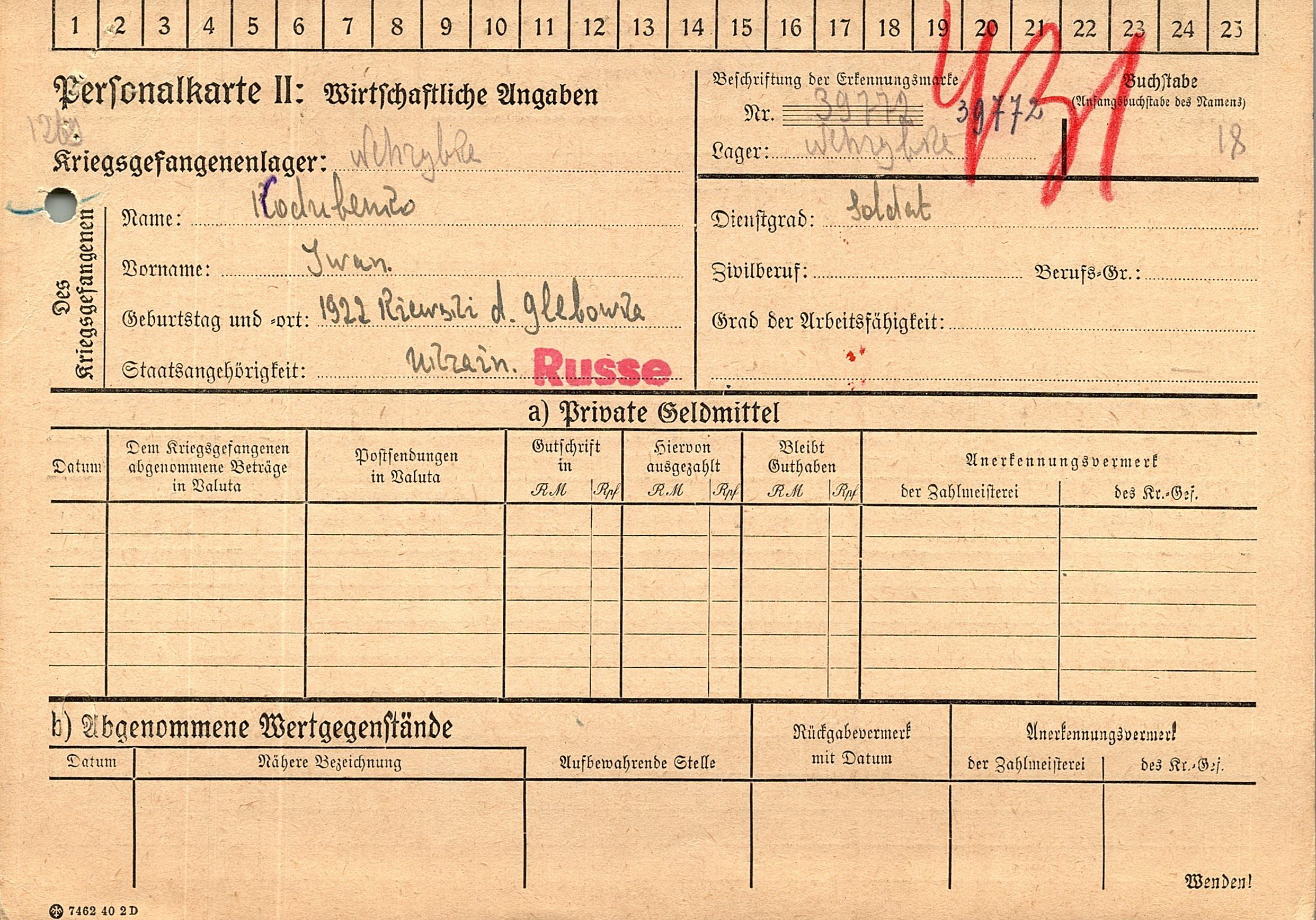 Военнопленные, трофейные карточки. Киевская обл.