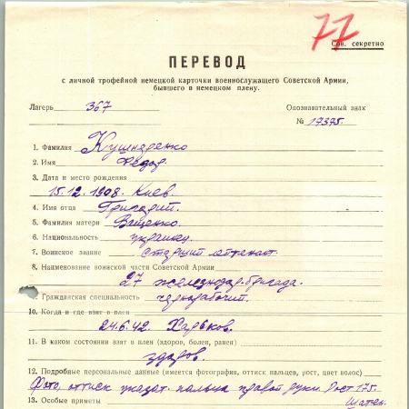 Военнопленные, трофейные карточки. Киевская обл.