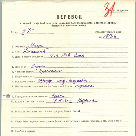 Военнопленные, трофейные карточки. Киевская обл.