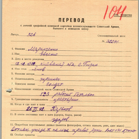 Военнопленные, трофейные карточки. Киевская обл.