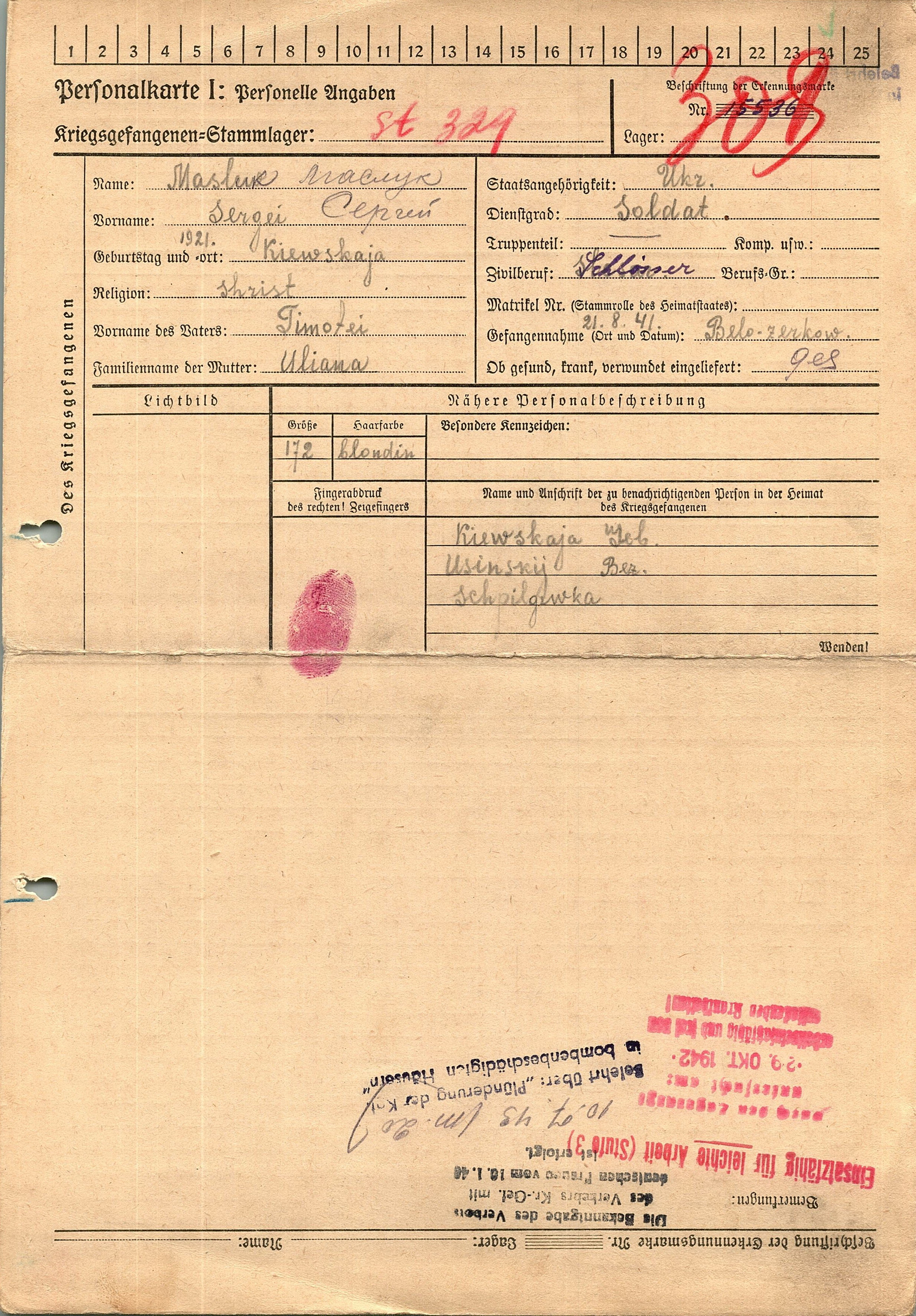 Военнопленные, трофейные карточки. Киевская обл.
