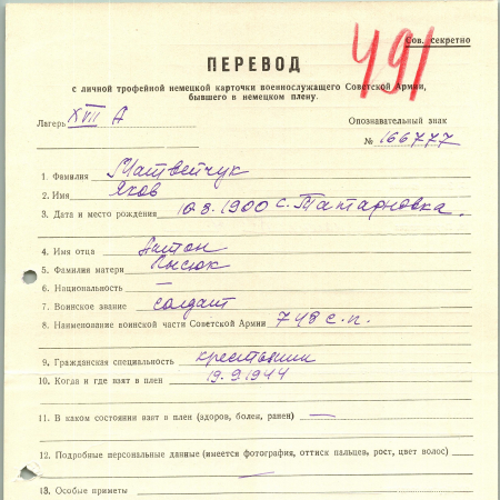 Военнопленные, трофейные карточки. Киевская обл.