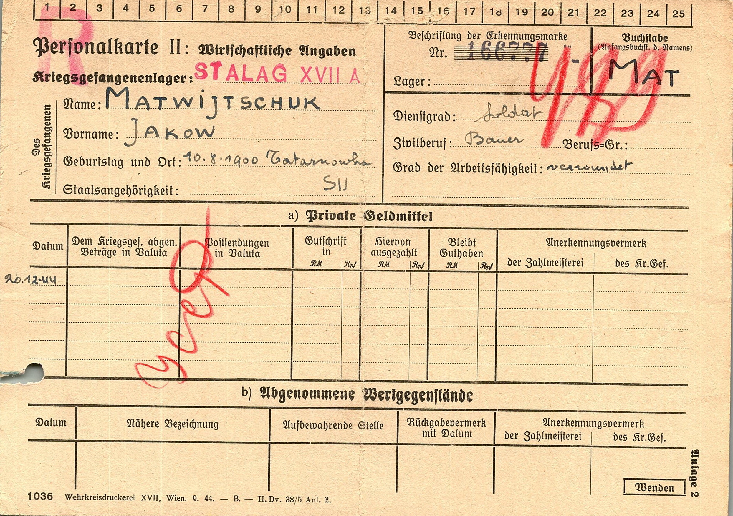 Военнопленные, трофейные карточки. Киевская обл.