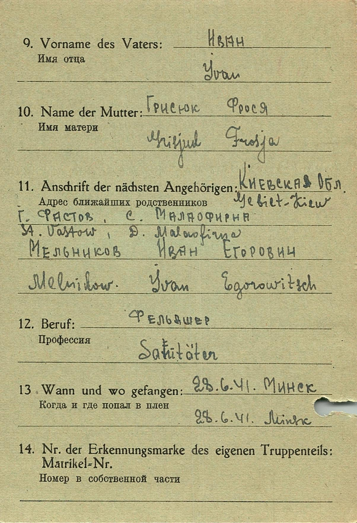 Военнопленные, трофейные карточки. Киевская обл.