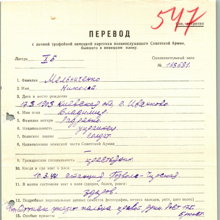 Военнопленные, трофейные карточки. Киевская обл.