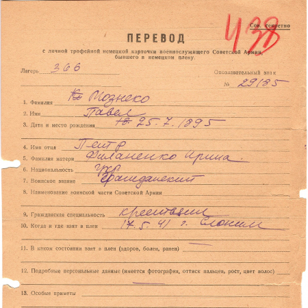 Военнопленные, трофейные карточки. Киевская обл.