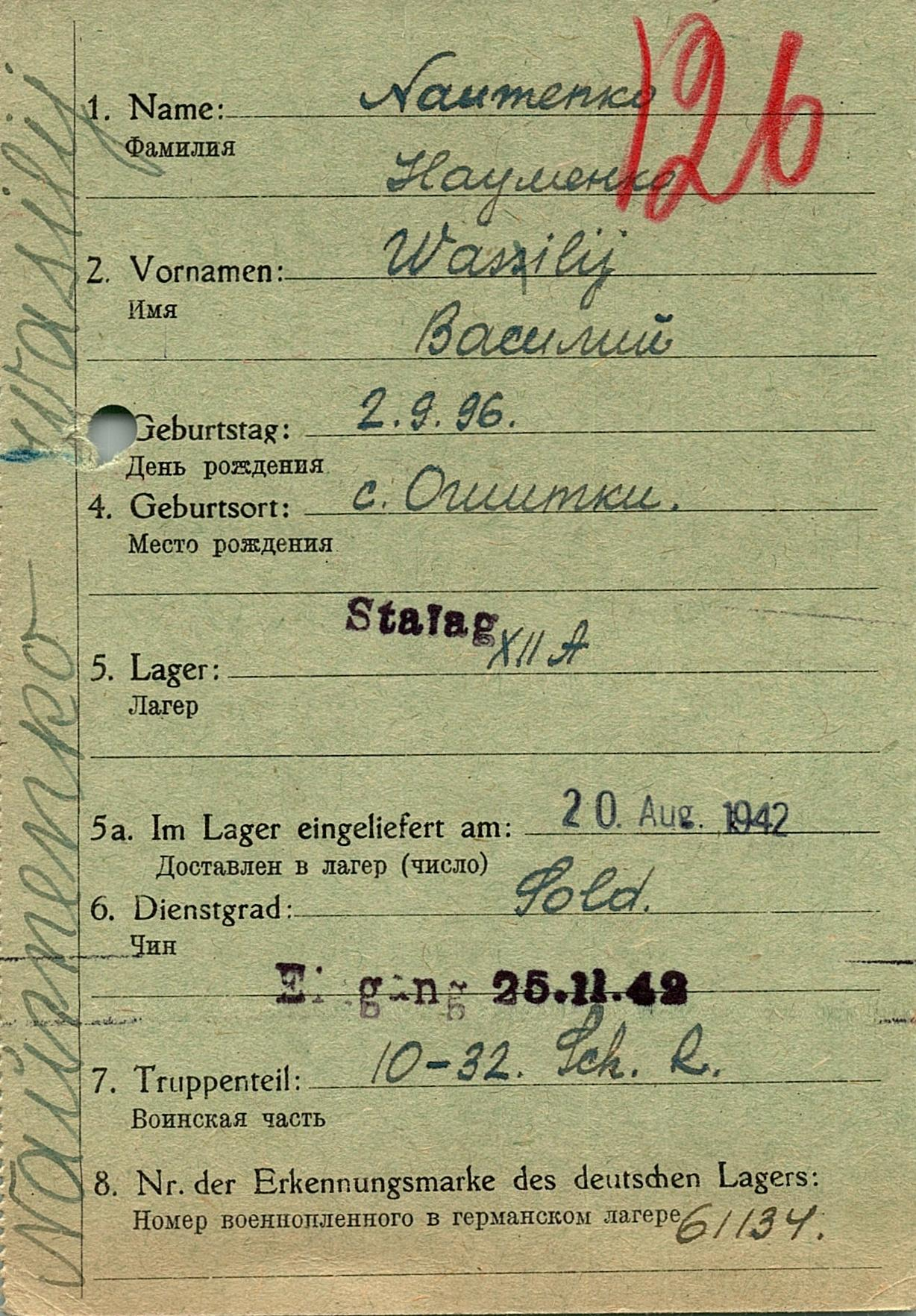 Военнопленные, трофейные карточки. Киевская обл.