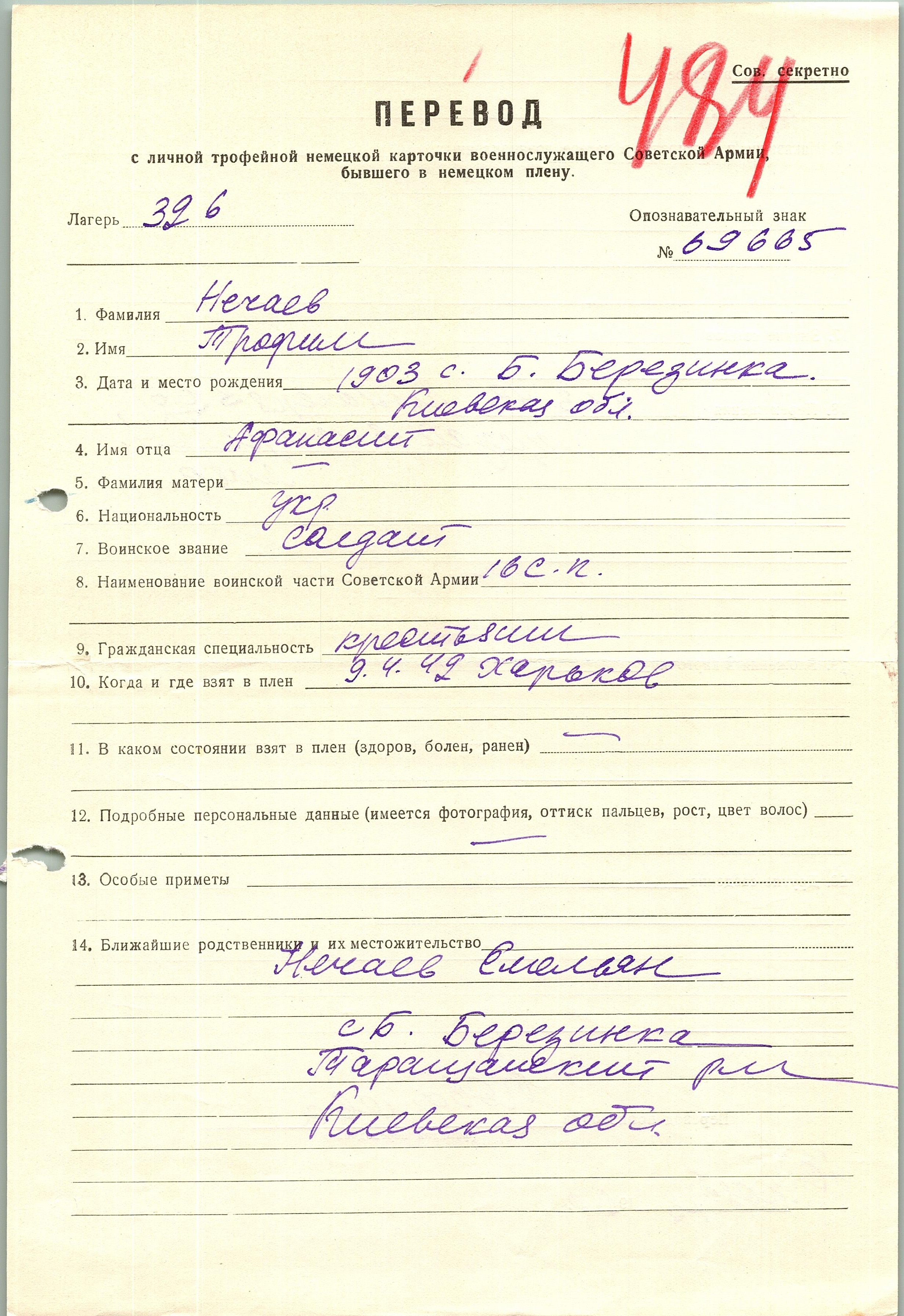 Военнопленные, трофейные карточки. Киевская обл.