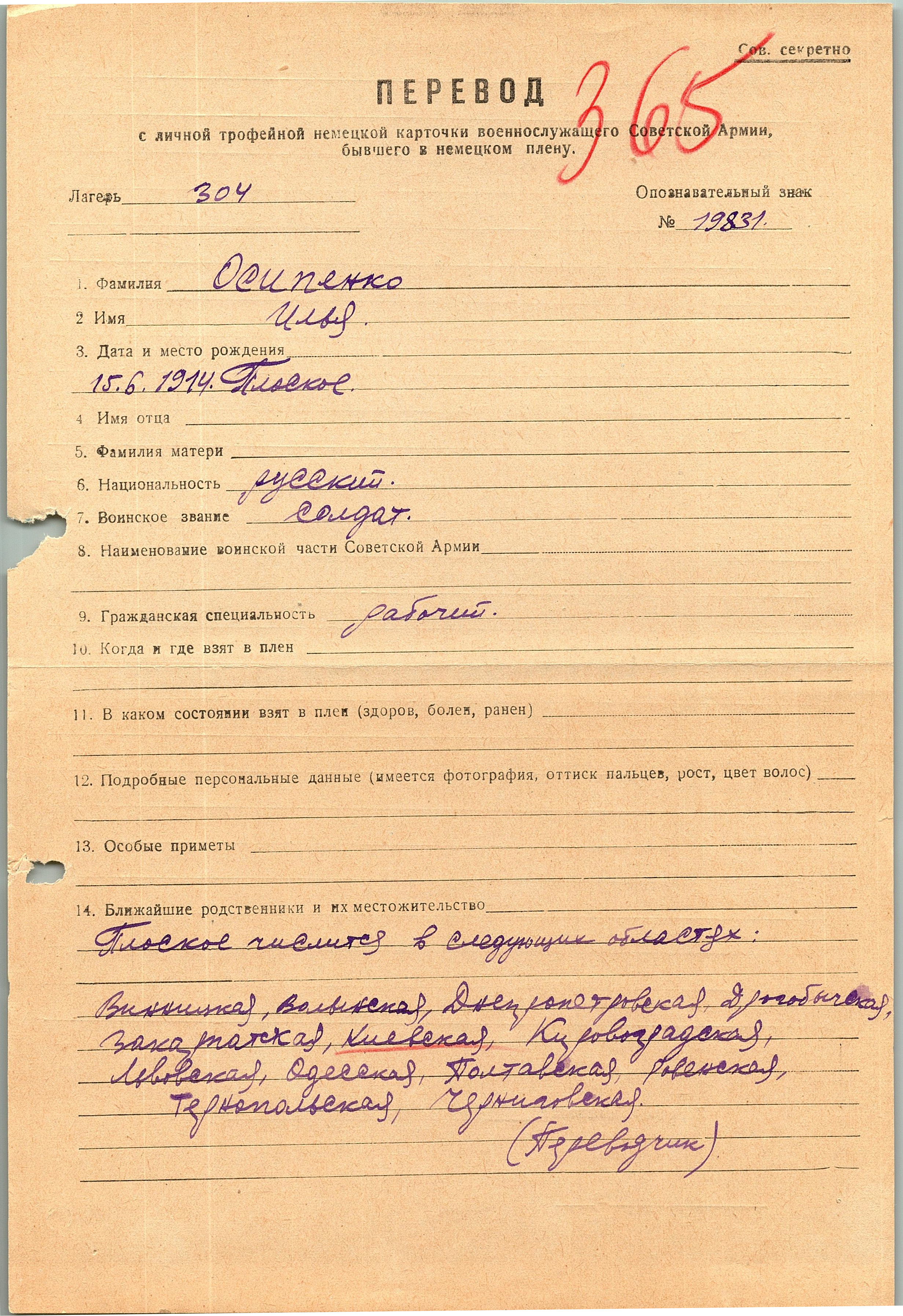 Военнопленные, трофейные карточки. Киевская обл.