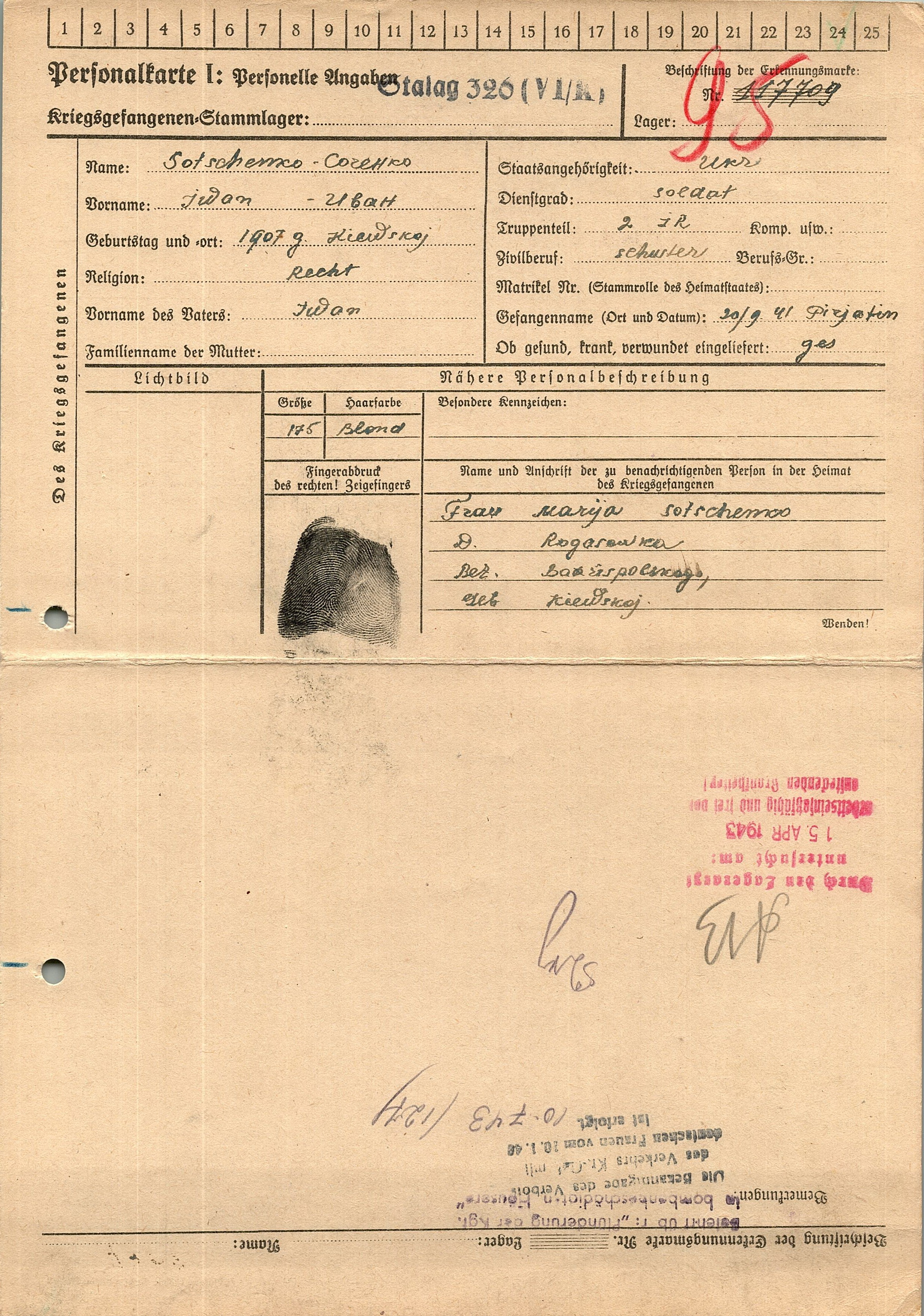 Военнопленные, трофейные карточки. Киевская обл.