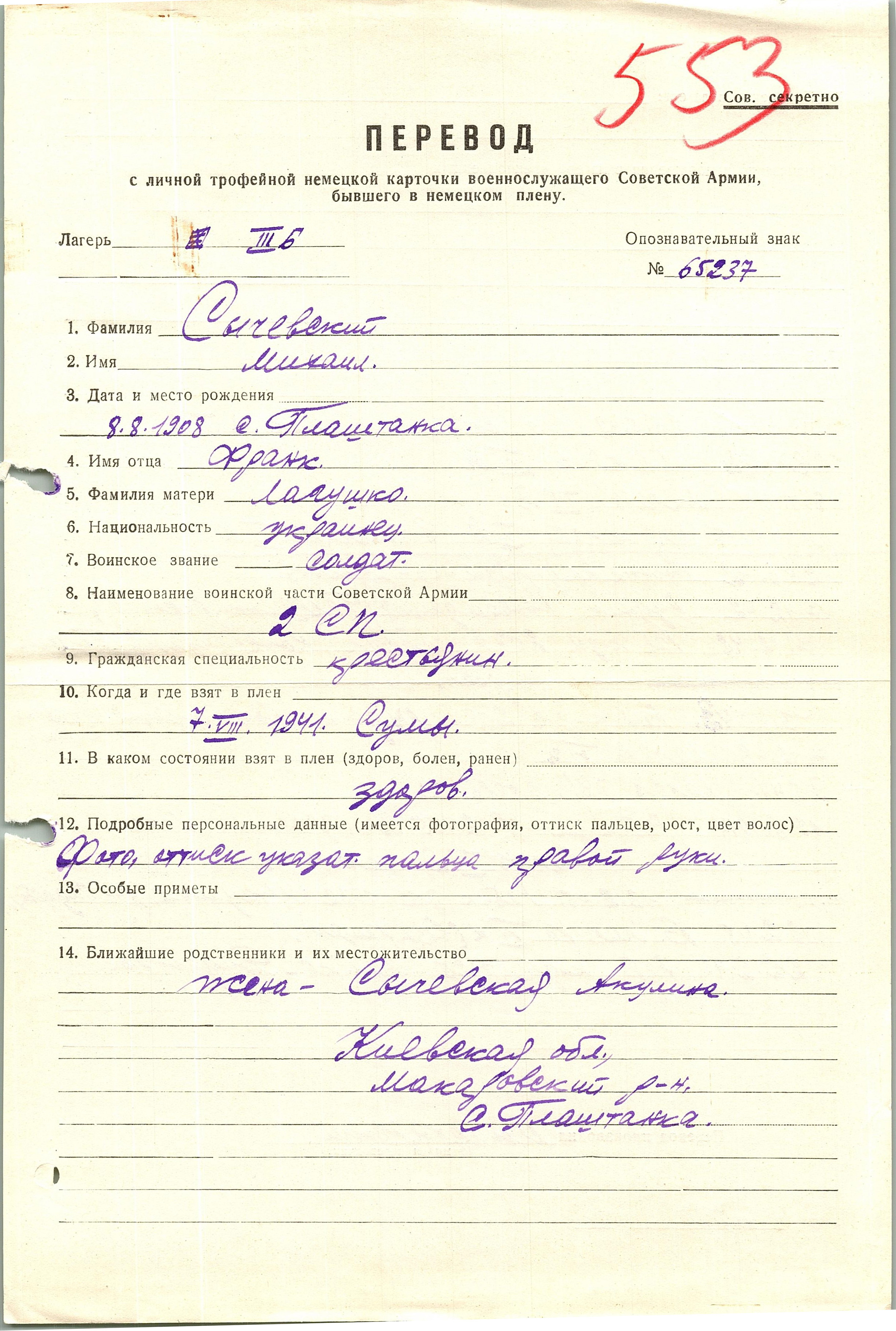 Военнопленные, трофейные карточки. Киевская обл.