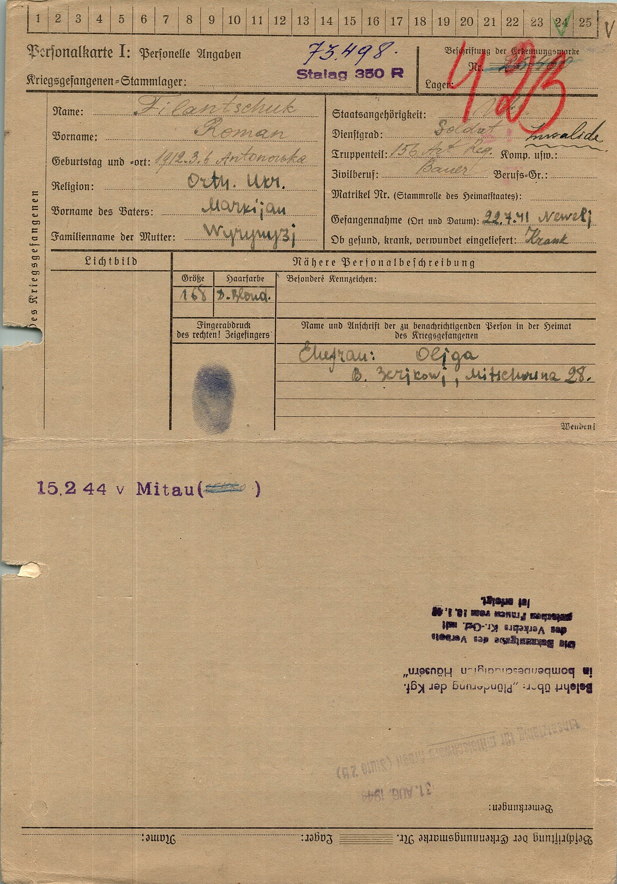 Военнопленные, трофейные карточки. Киевская обл.