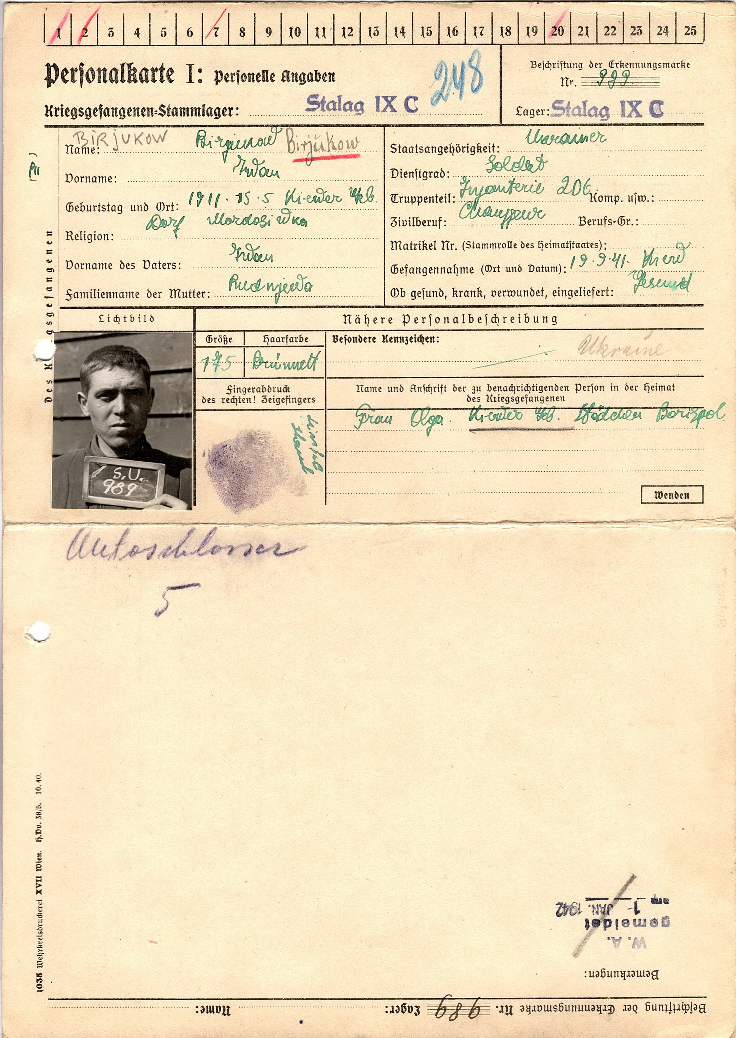 Военнопленные, трофейные карточки. Киевская обл.