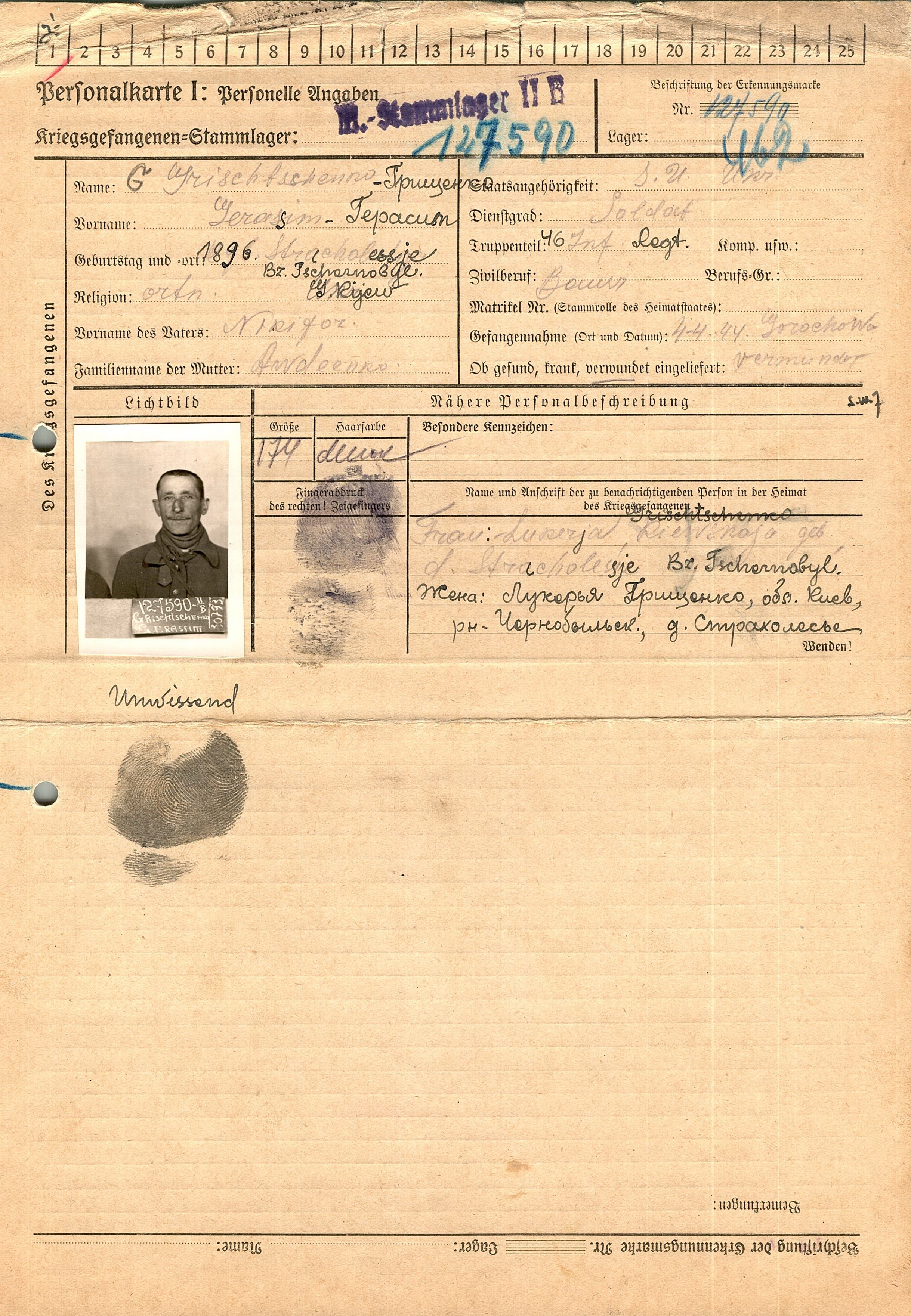 Военнопленные, трофейные карточки. Киевская обл.