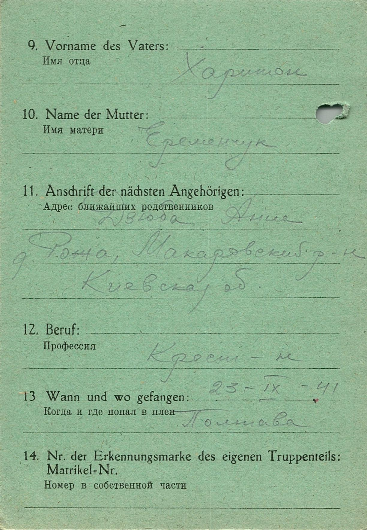 Военнопленные, трофейные карточки. Киевская обл.