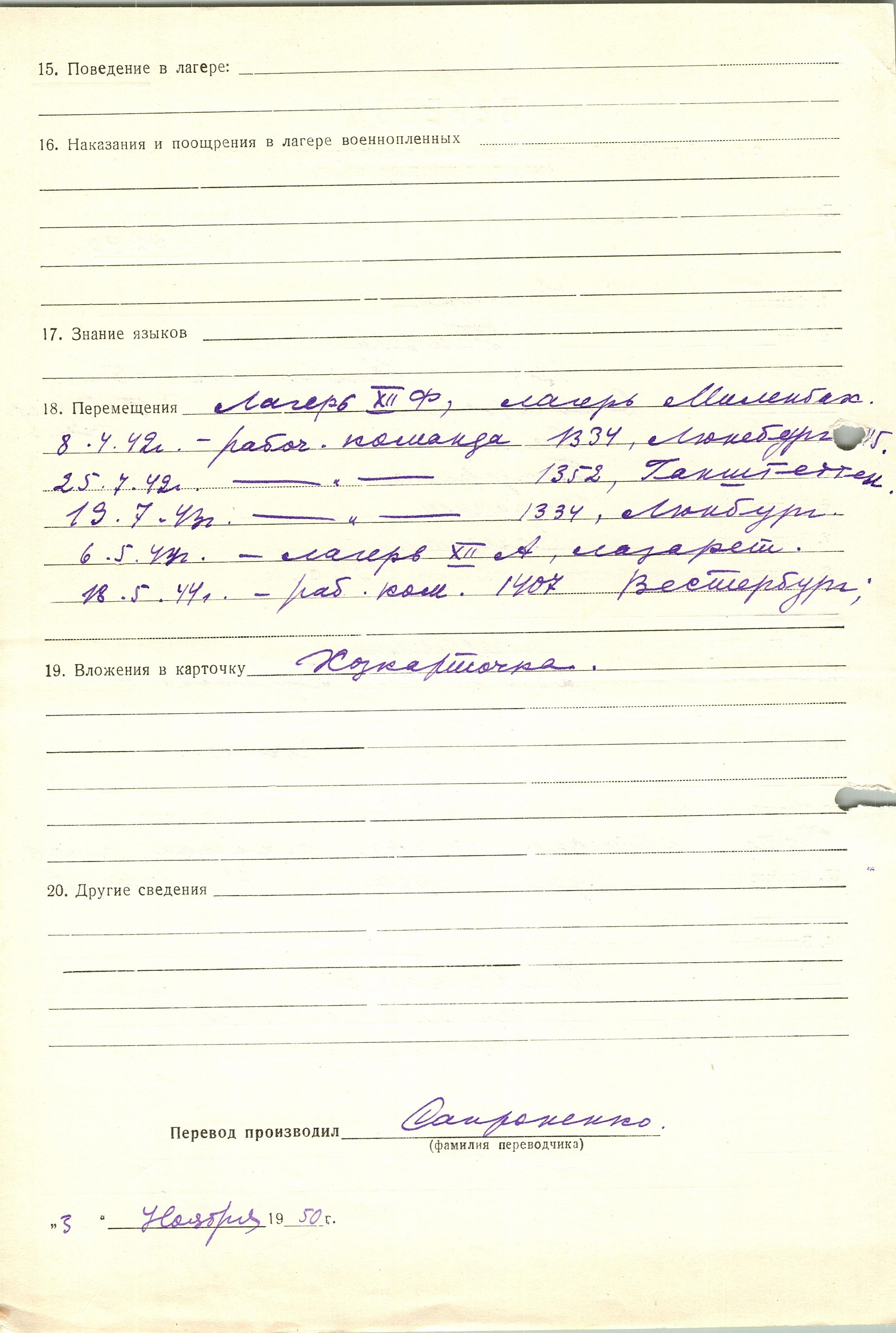 Военнопленные, трофейные карточки. Киевская обл.