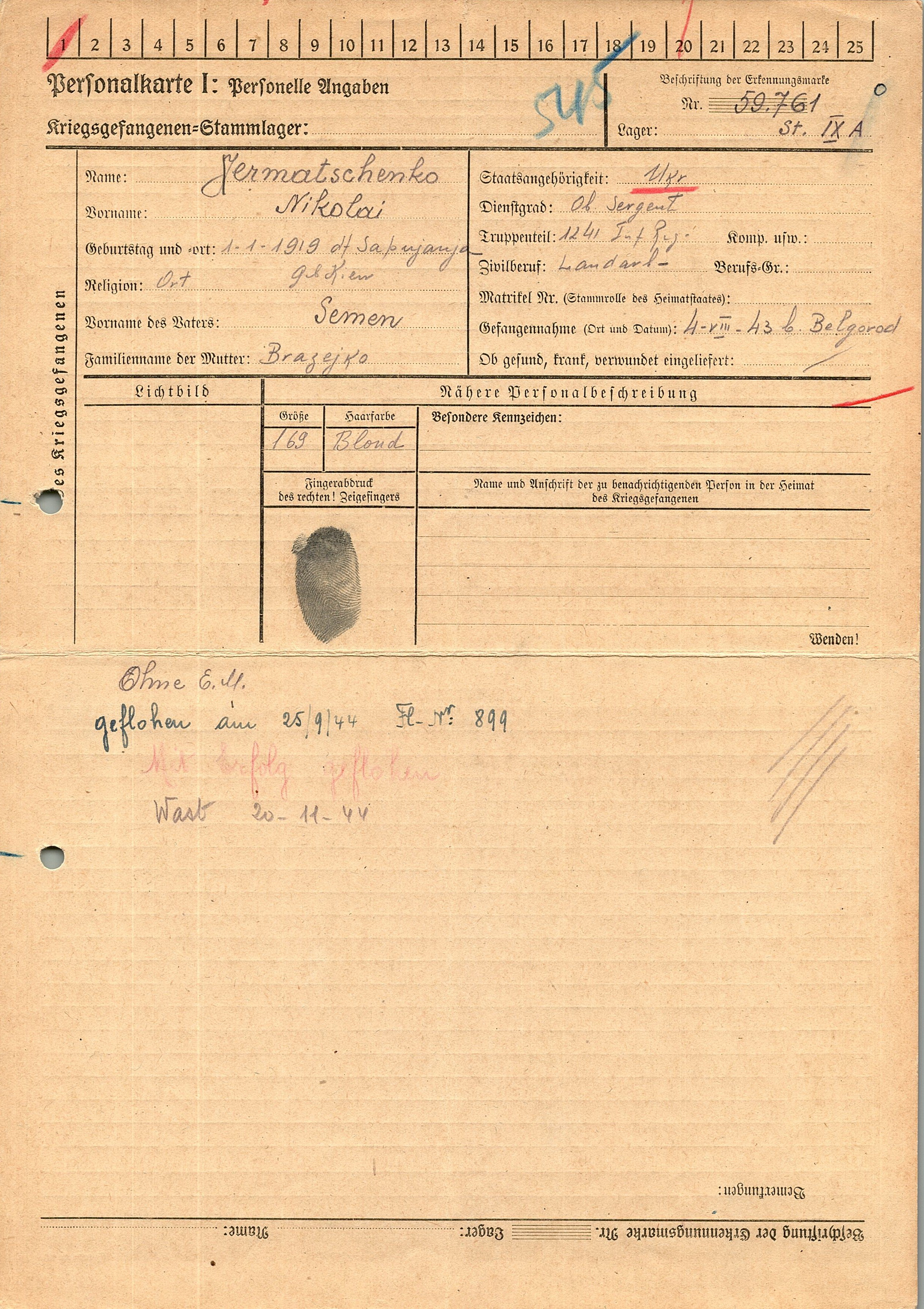 Военнопленные, трофейные карточки. Киевская обл.