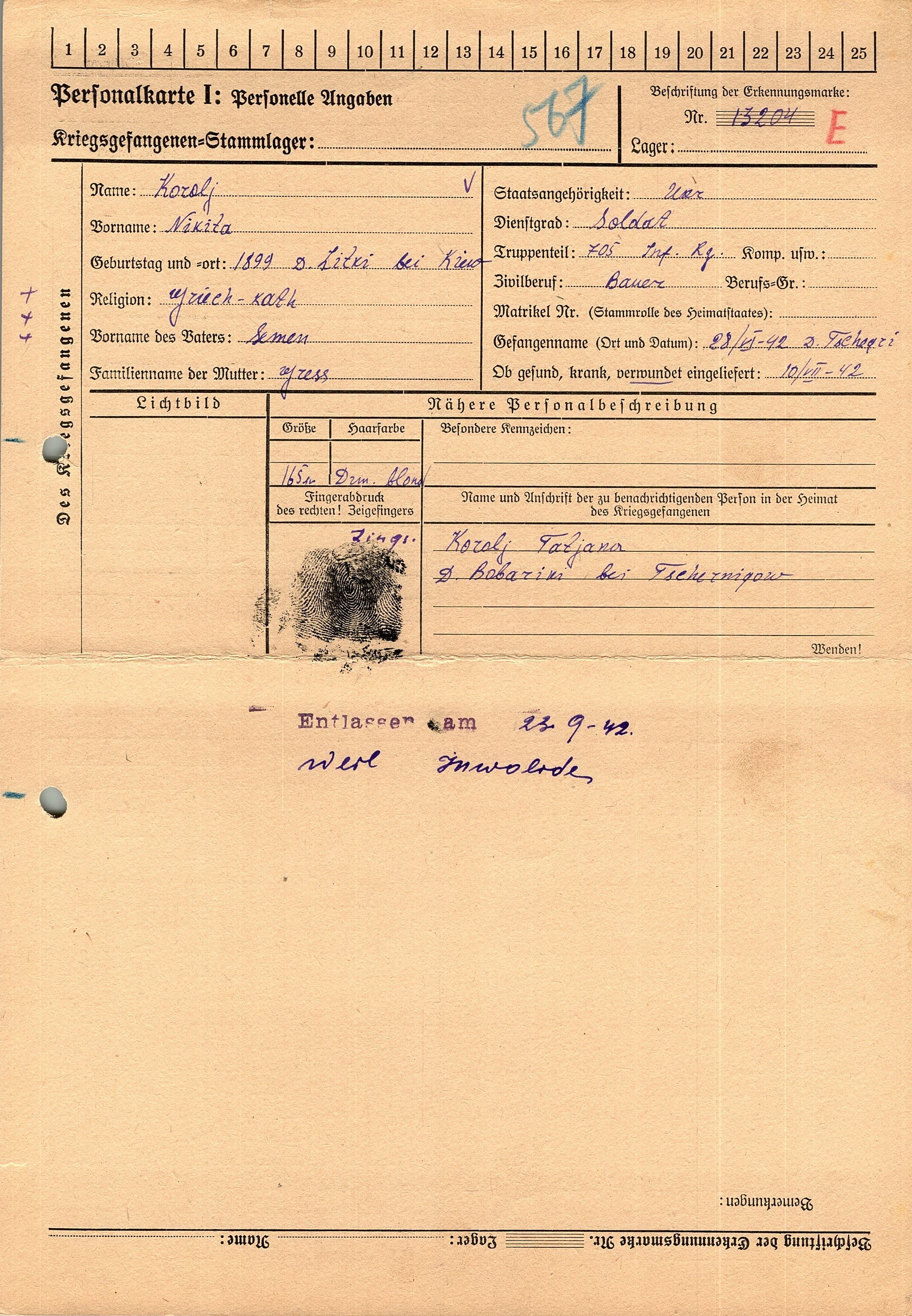 Военнопленные, трофейные карточки. Киевская обл.
